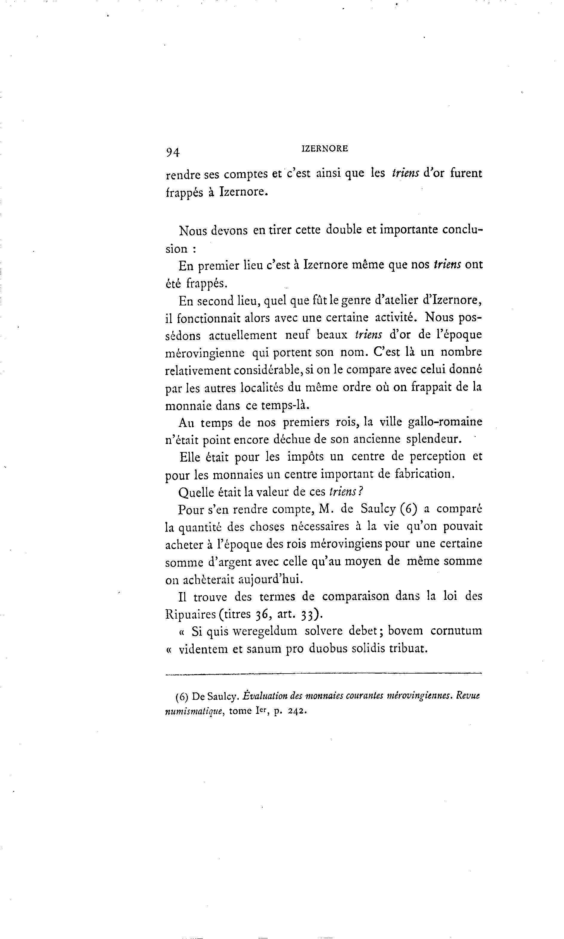 (6) De Saulcy. Évaluation des monnaies courantes mérovingiennes. Revue