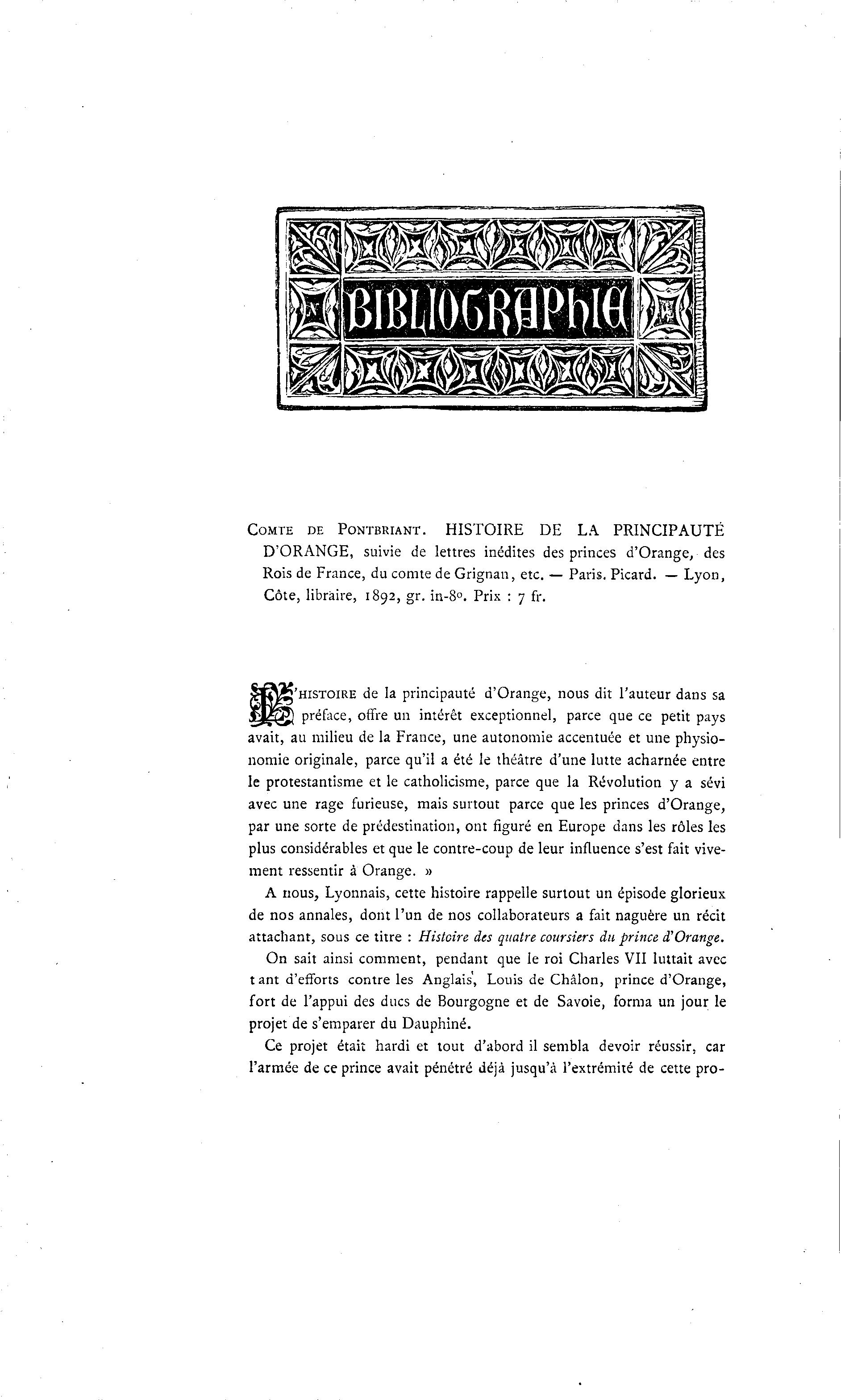 Rois de France, du comte de Grignan, etc. — Paris. Picard. — Lyon,