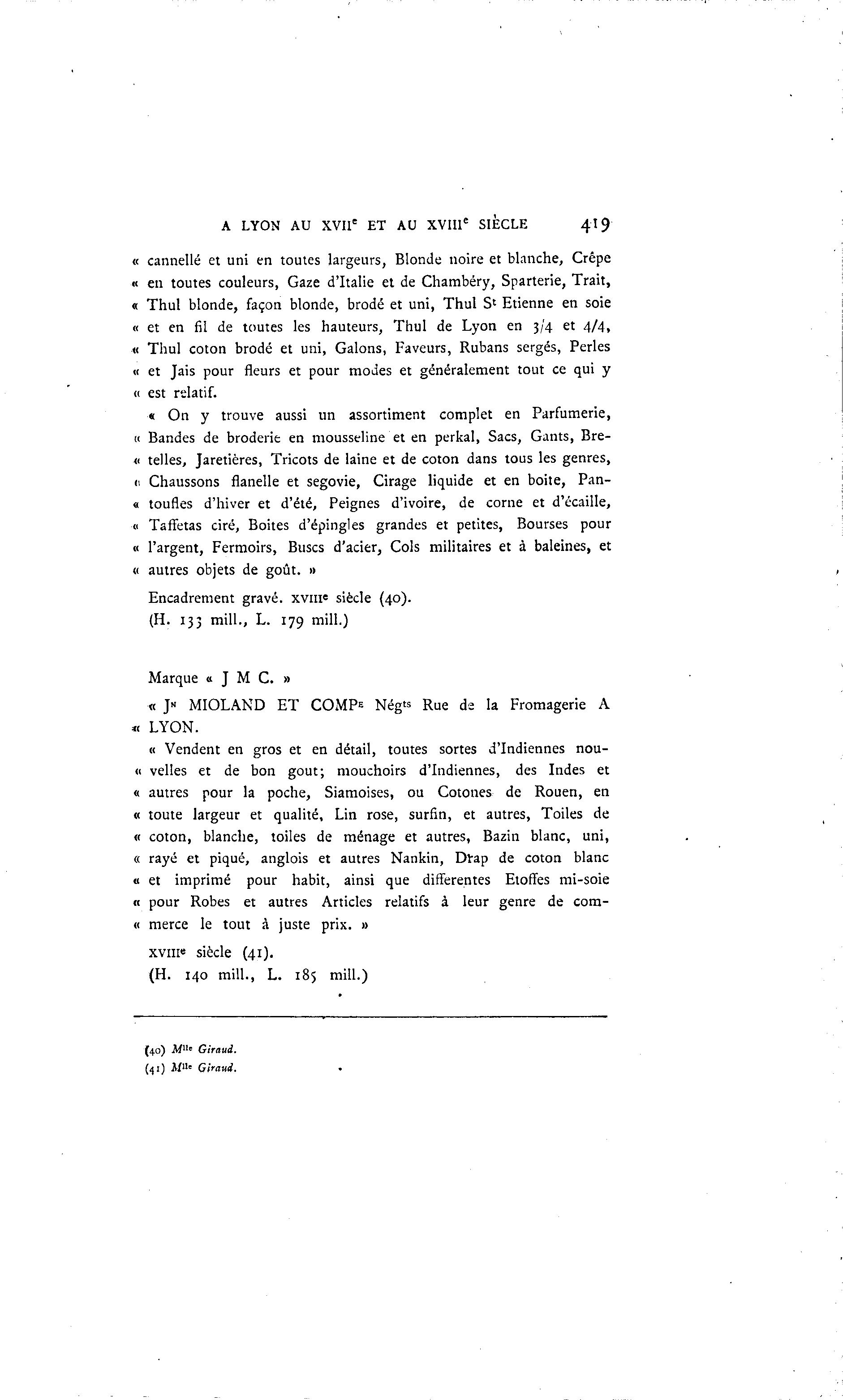 A LYON AU XVIIe ET AU XVIIIe SIECLE 419