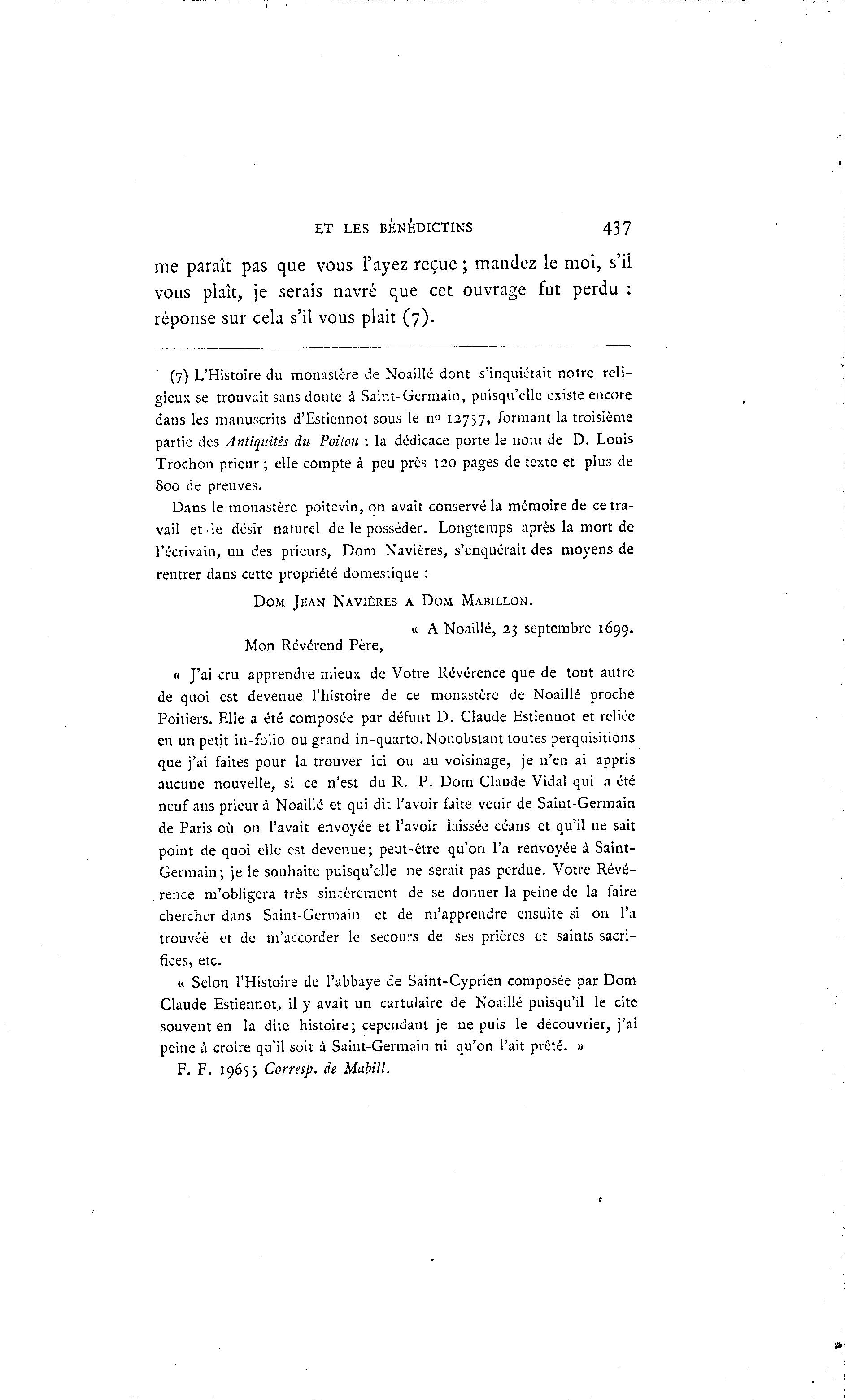 D O M JEAN NAVIÈRES A D O M MABILLON.