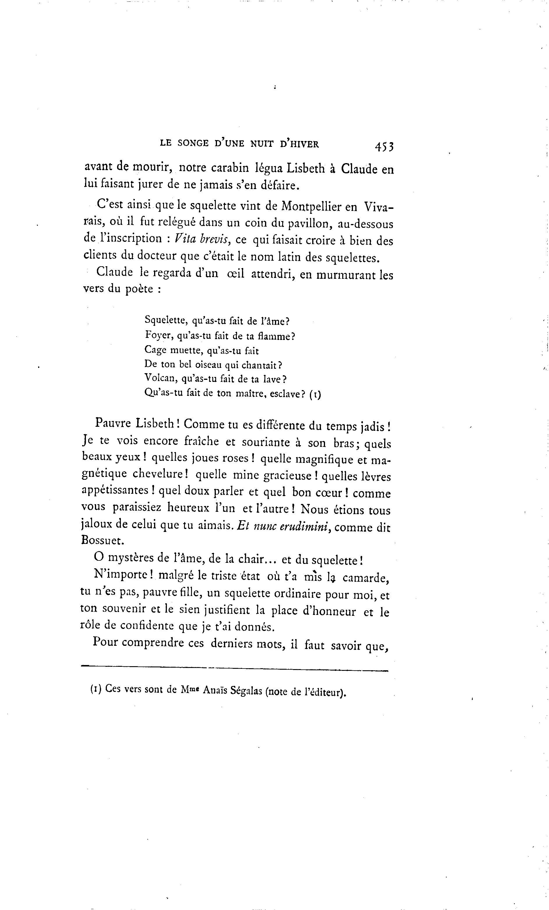 tu n'es pas, pauvre fille, un squelette ordinaire pour moi, et