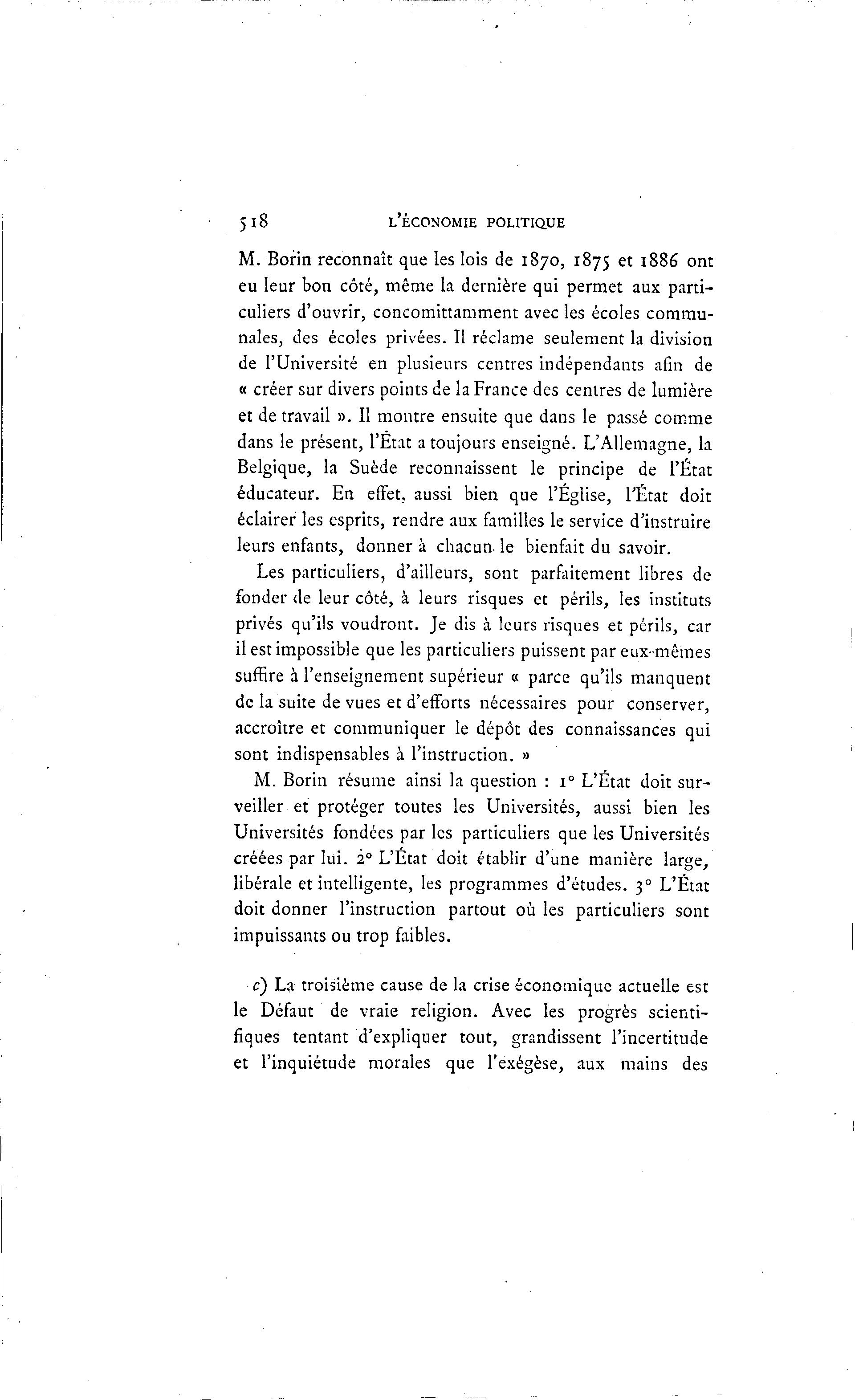 M. Borin résume ainsi la question : 1° L'État doit sur-