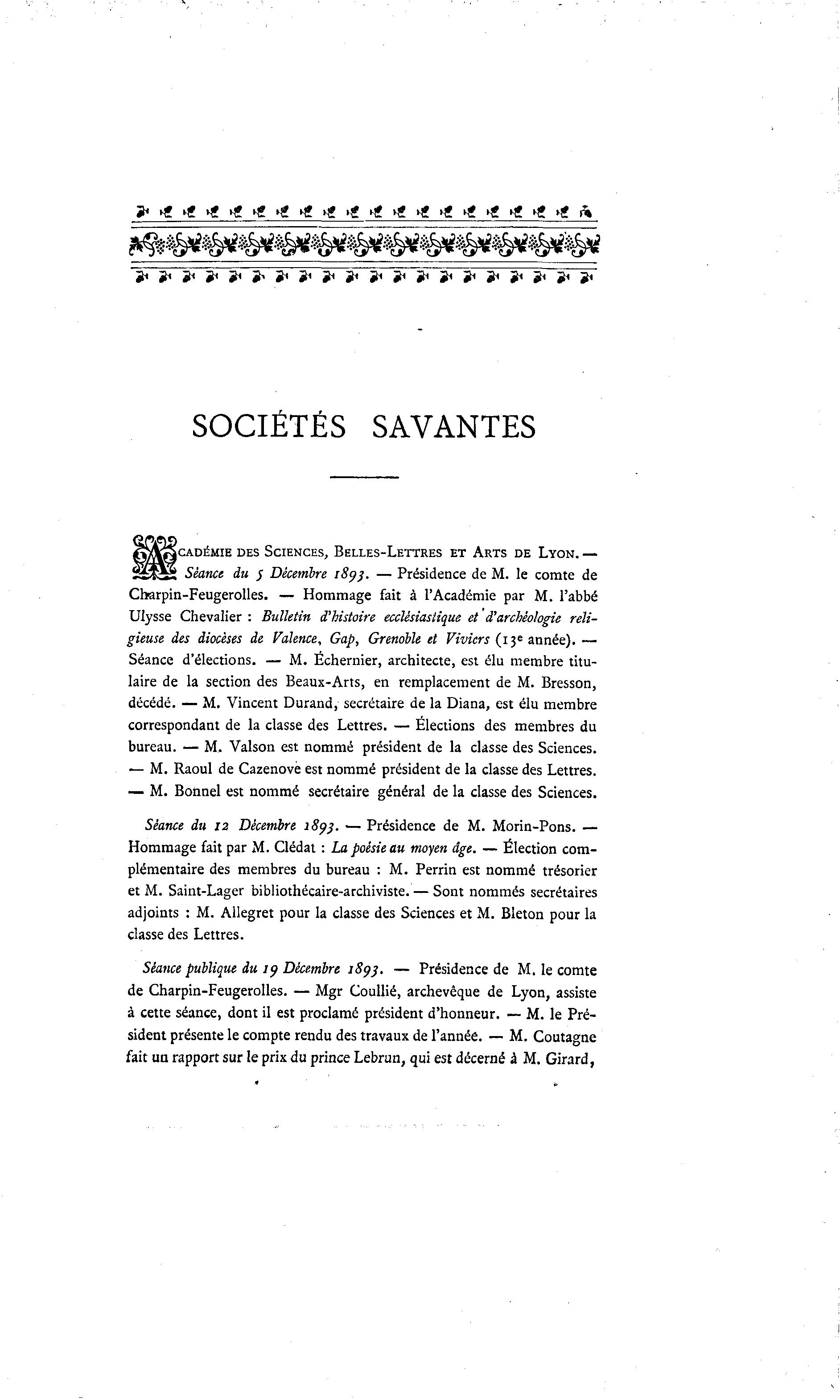 Séance du 12 Décembre 1893. — Présidence de M. Morin-Pons. —
