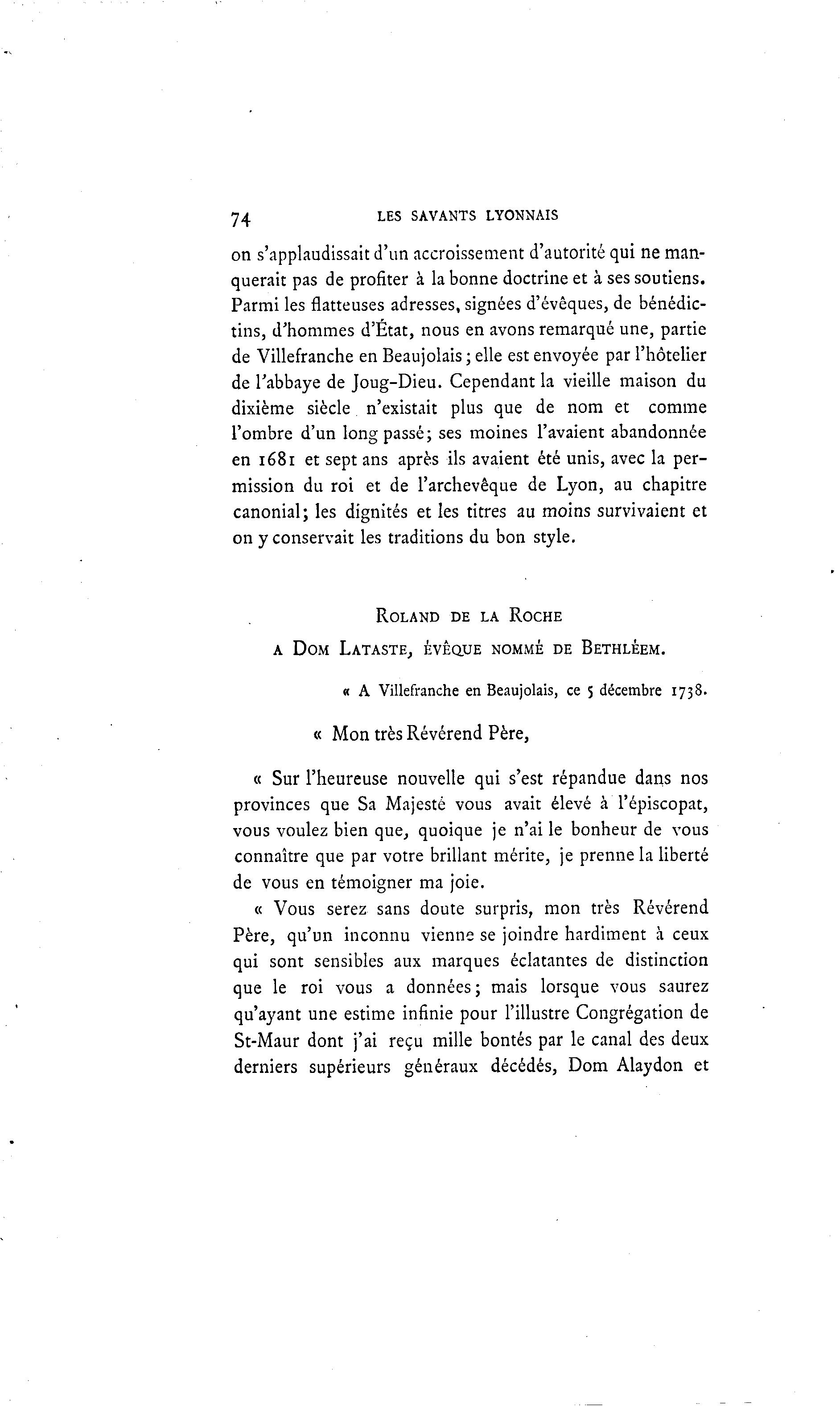 « A Villefranche en Beaujolais, ce 5 décembre 1738.