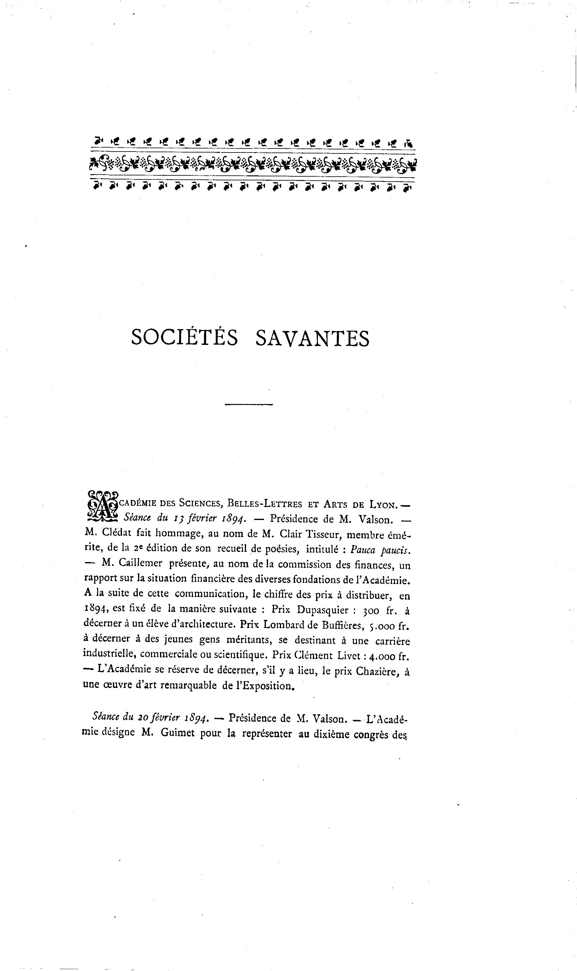 Séance du 1} février 1894. — Présidence de M. Valson. —