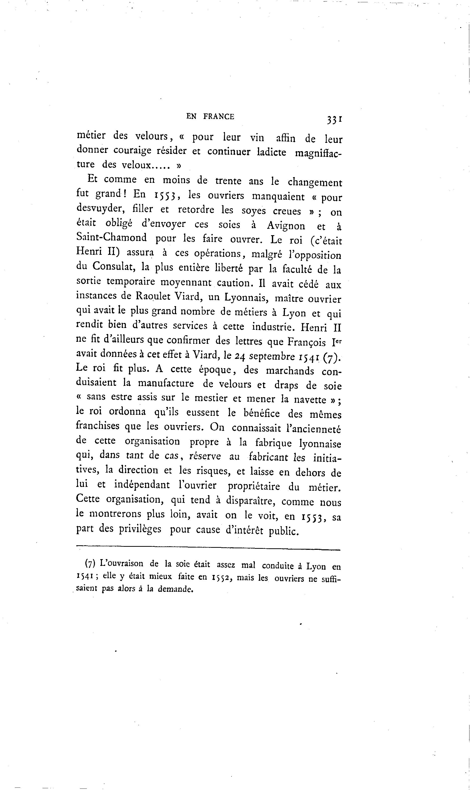 (7) L'ouvraison de la soie était assez mal conduite â Lyon en