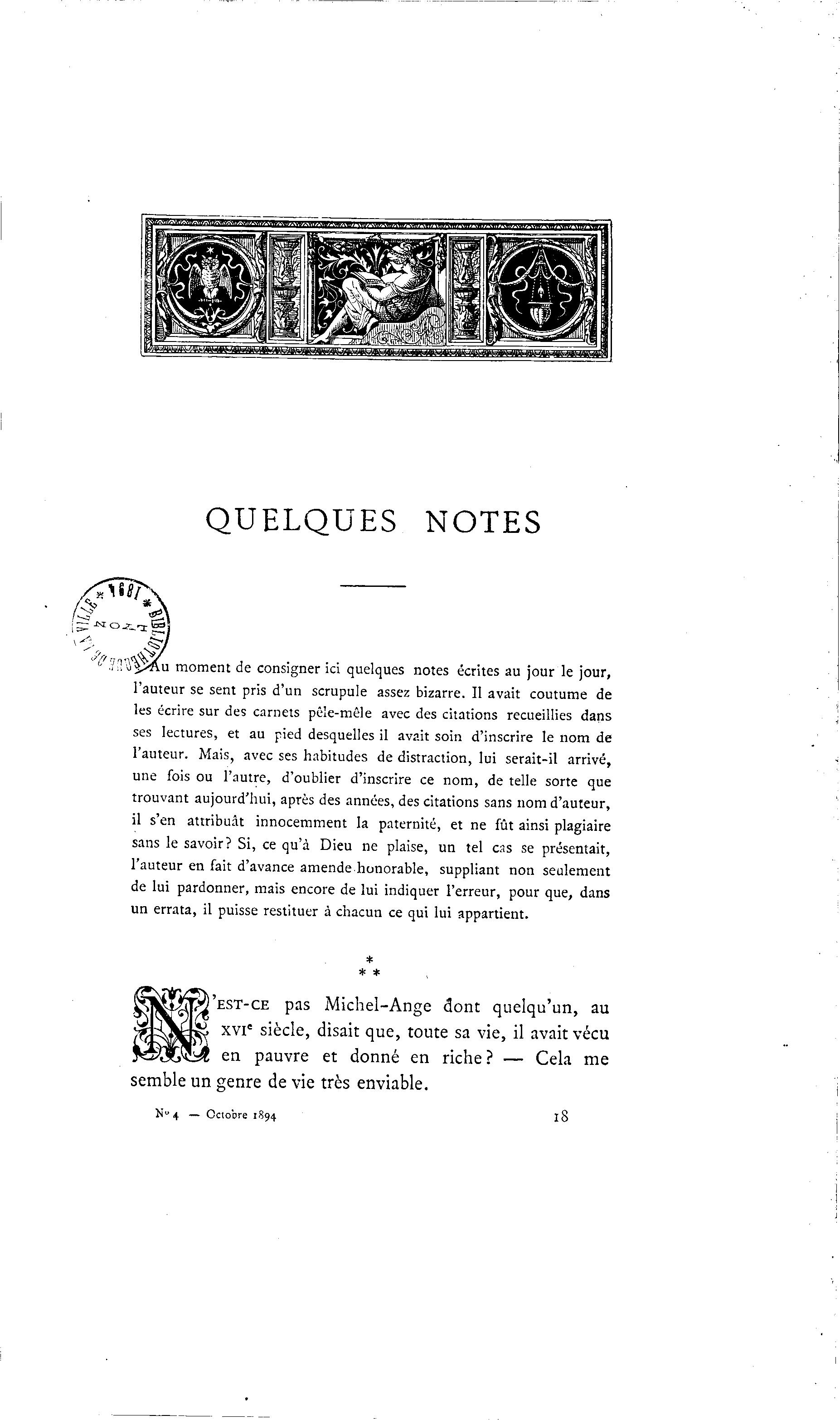 'ij^Au moment de consigner ici quelques notes écrites au jour le jour,