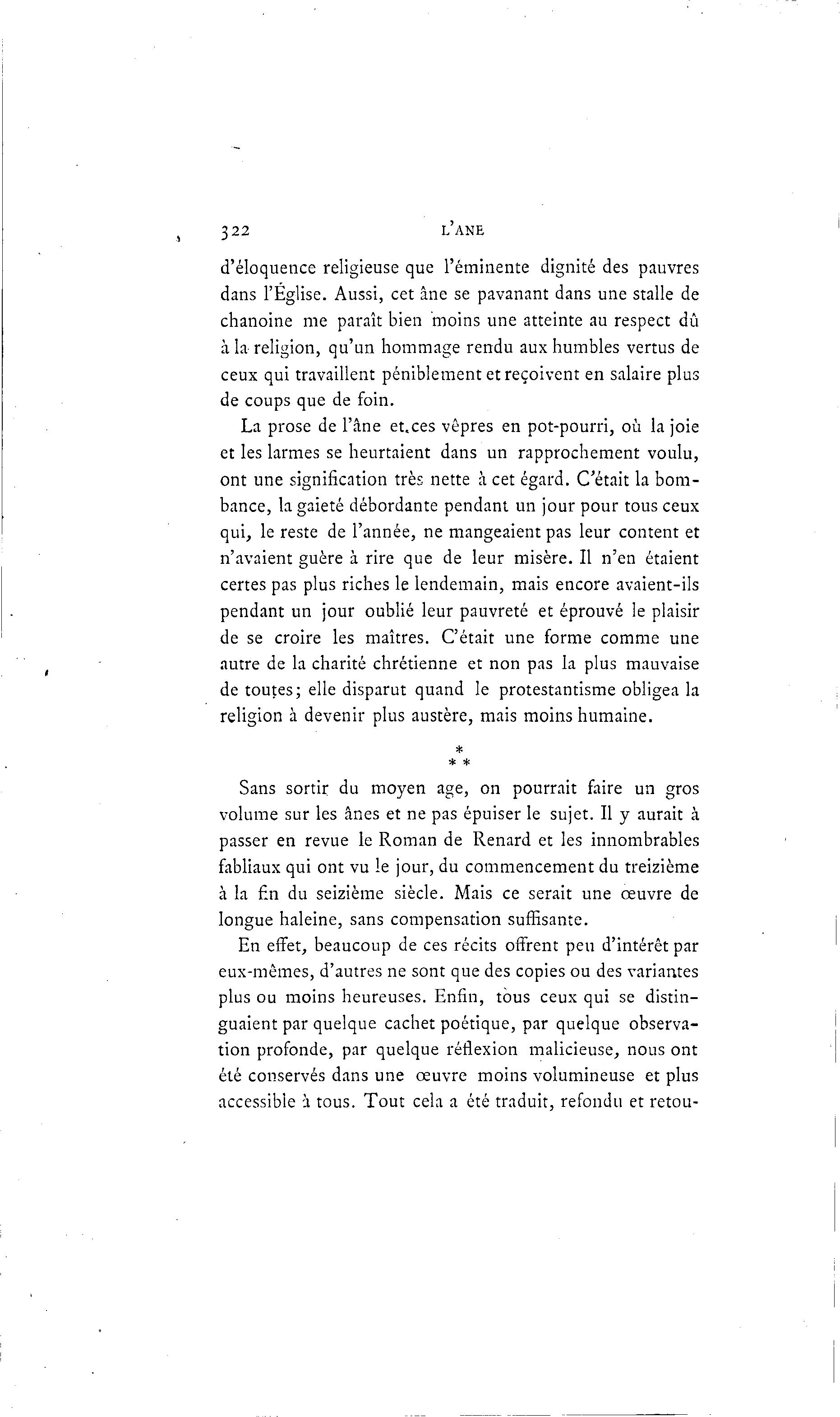 volume sur les ânes et ne pas épuiser le sujet. Il y aurait Ã