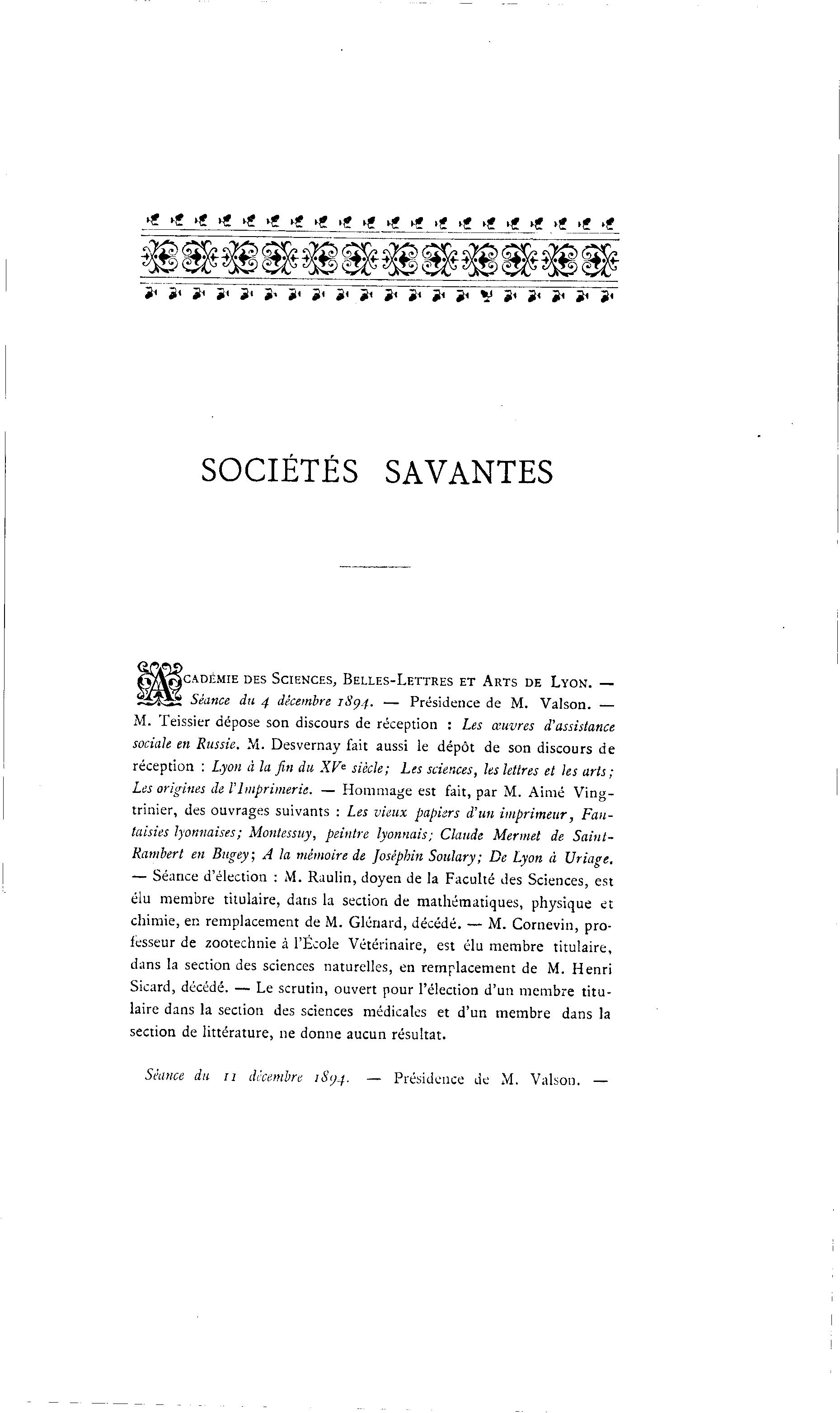 Séance du 4 décembre 1894. — Présidence de M. Valson. —