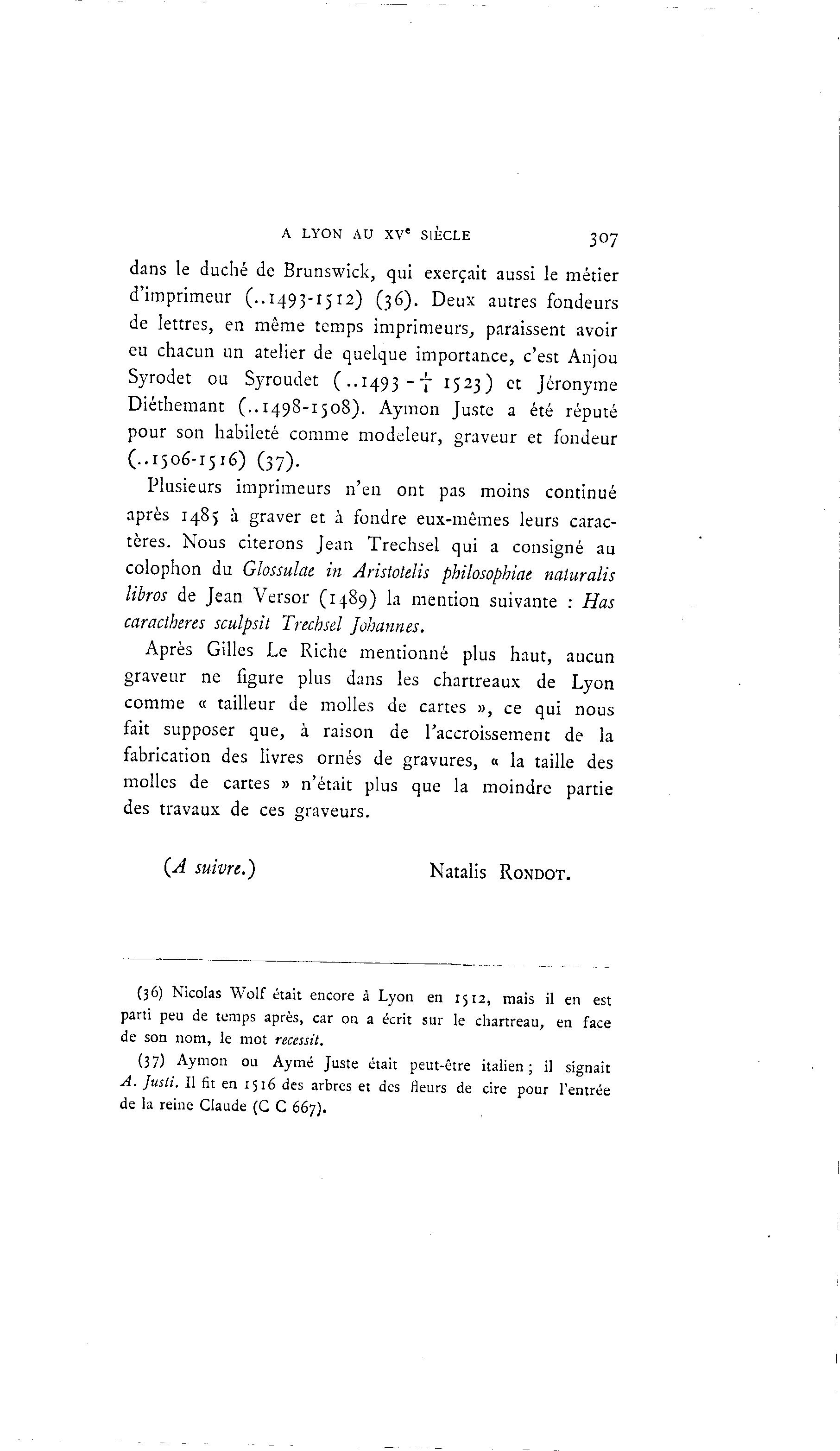 (36) Nicolas Wolf était encore à Lyon en 1512, mais il en est