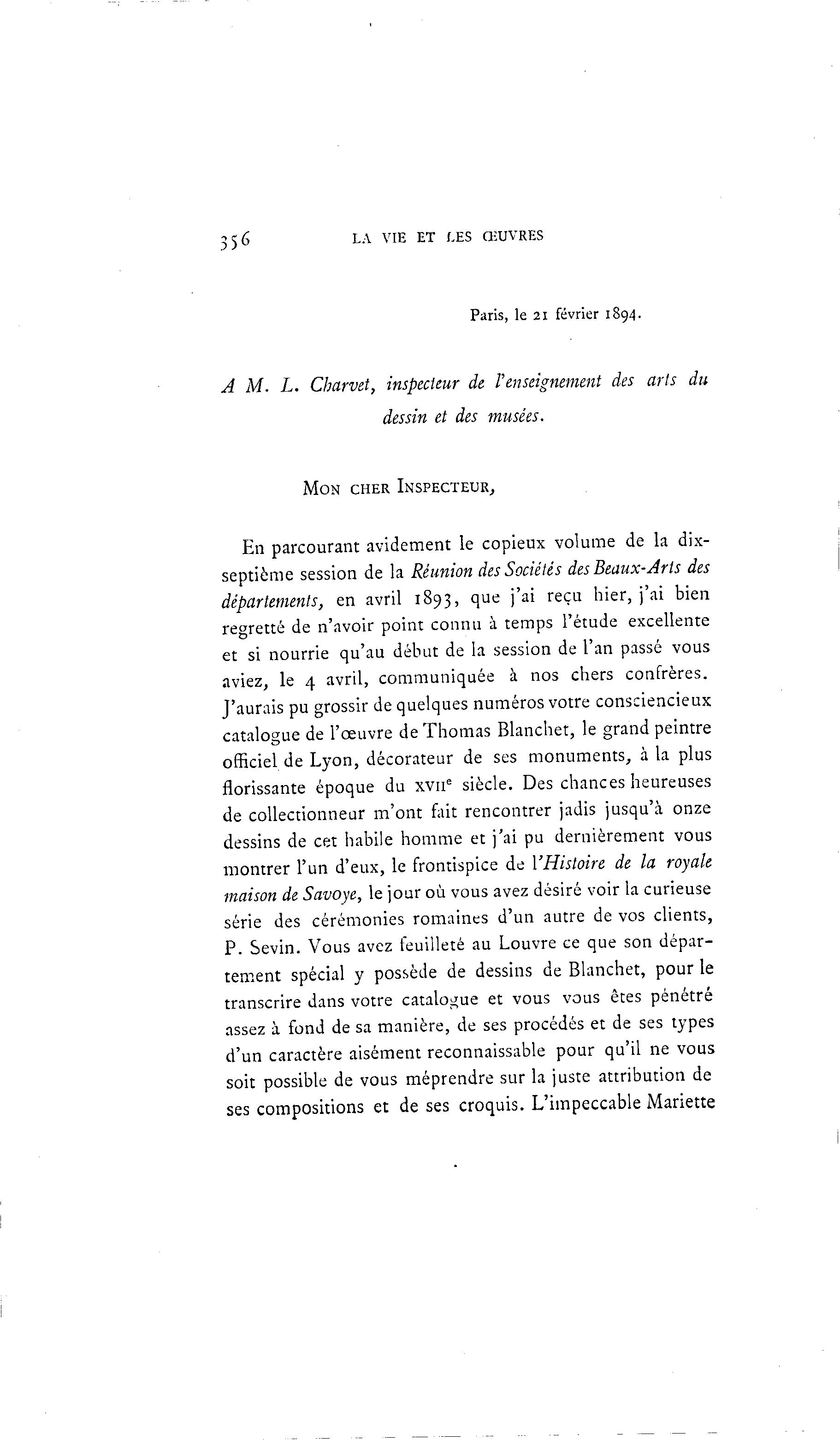 A M. L. Charvet, inspecteur de l'enseignement des arts du
