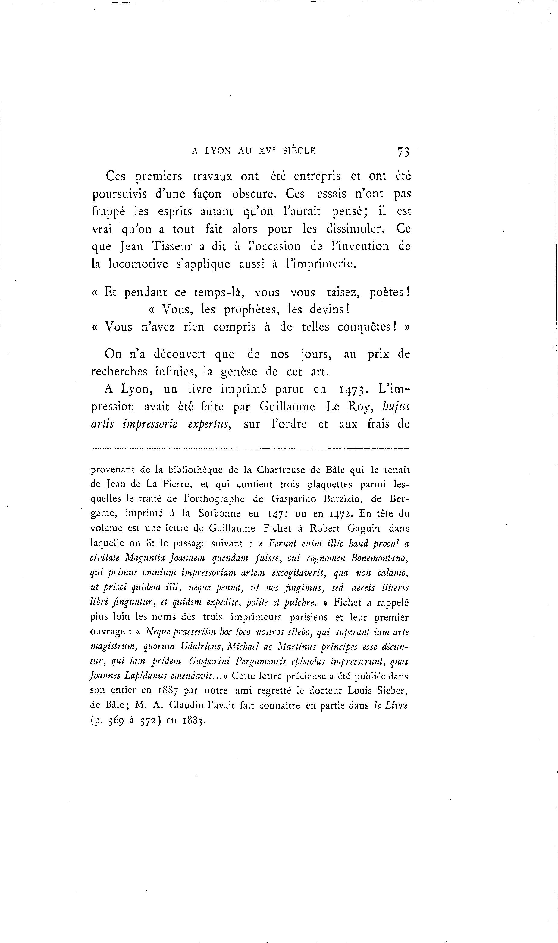 A Lyon, un livre imprimé parut en 1473. L'im-