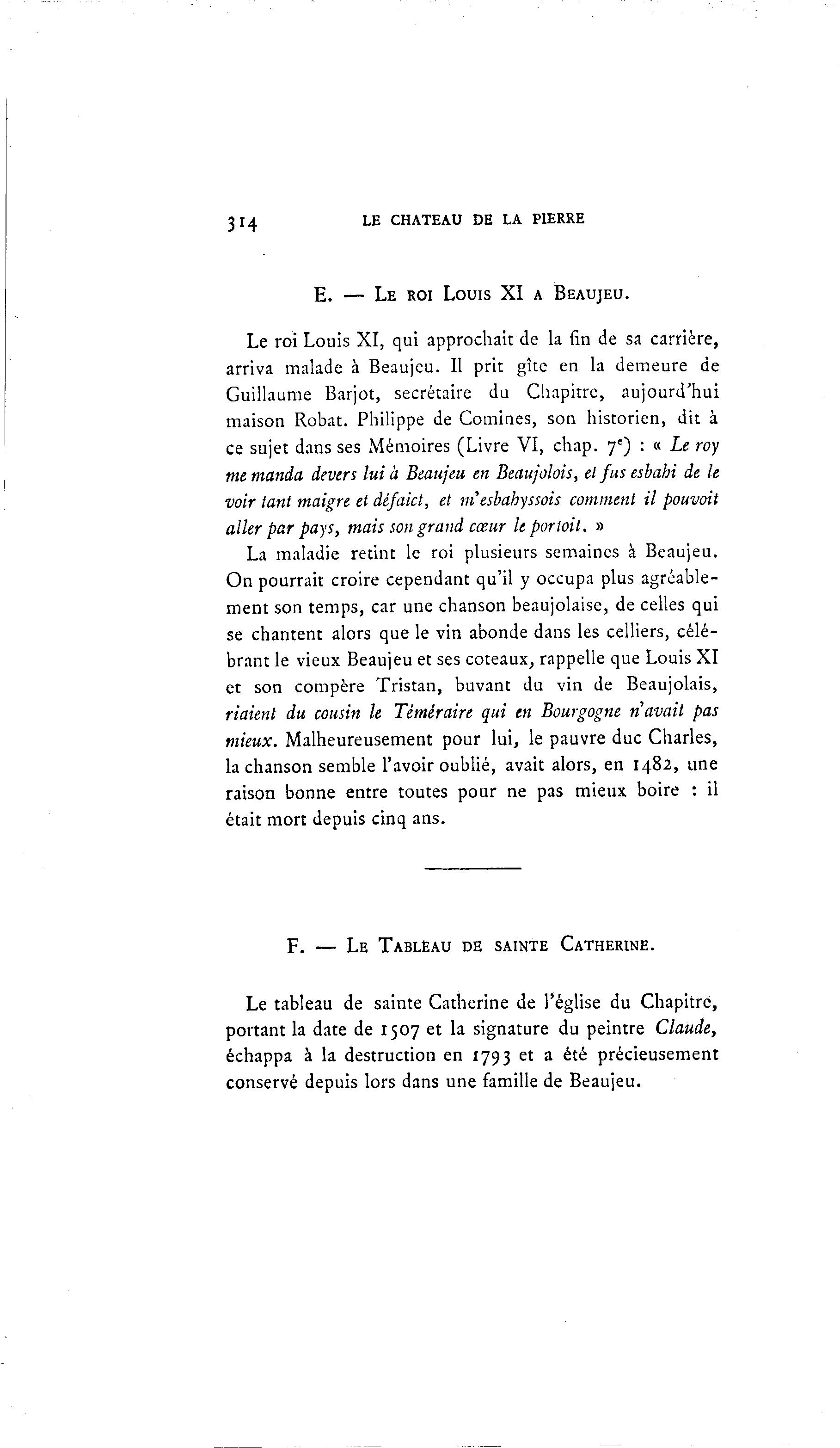 E. — LE ROI LOUIS XI A BEAUJEU.