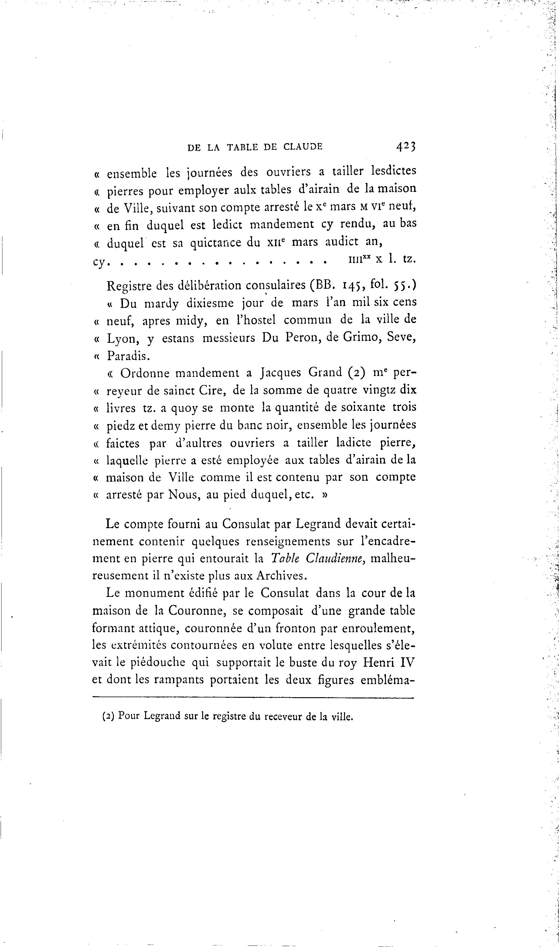 DE LA TABLE DE CLAUDE 423