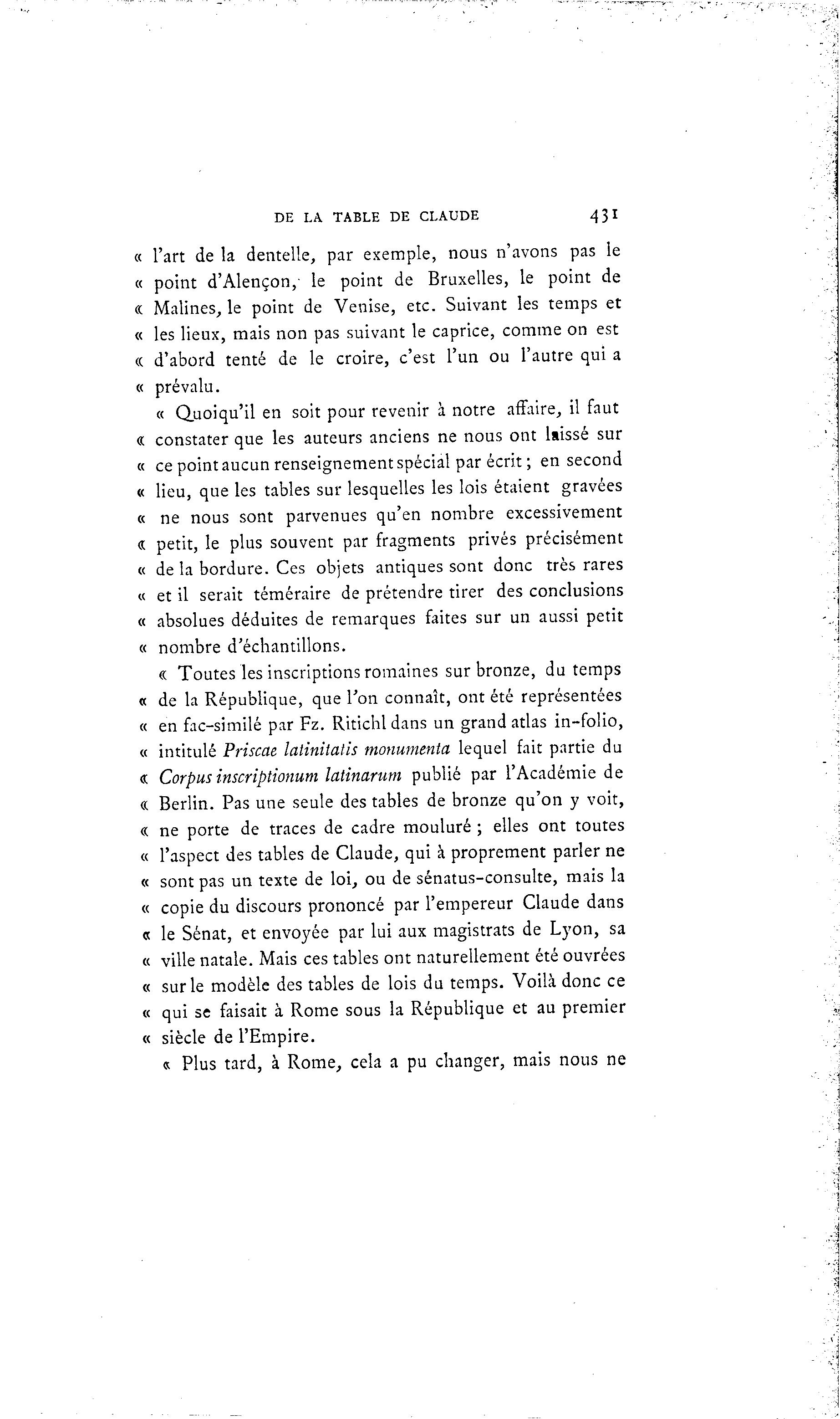 DE LA TABLE DE CLAUDE 43I