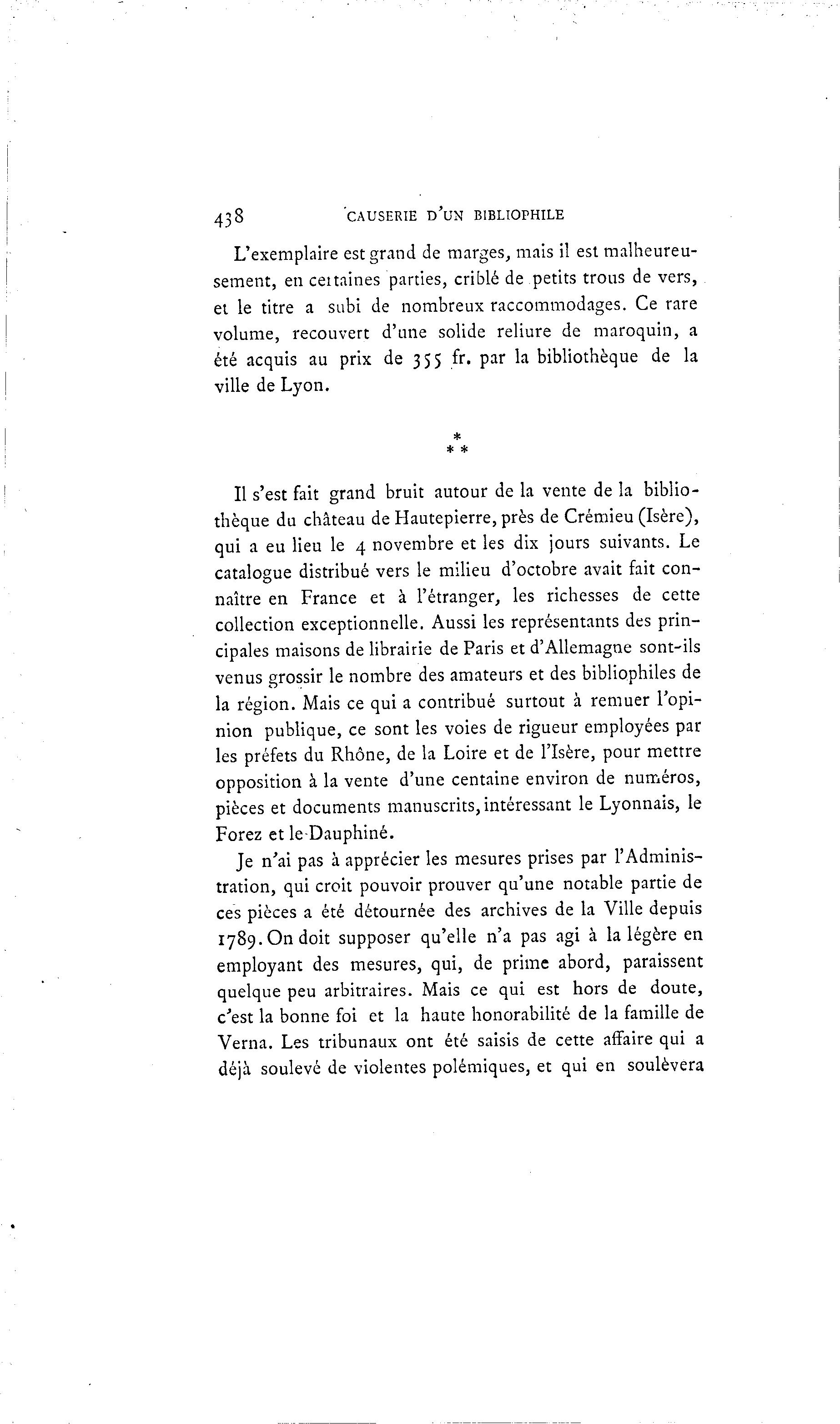 438 'CAUSERIE D'UN BIBLIOPHILE