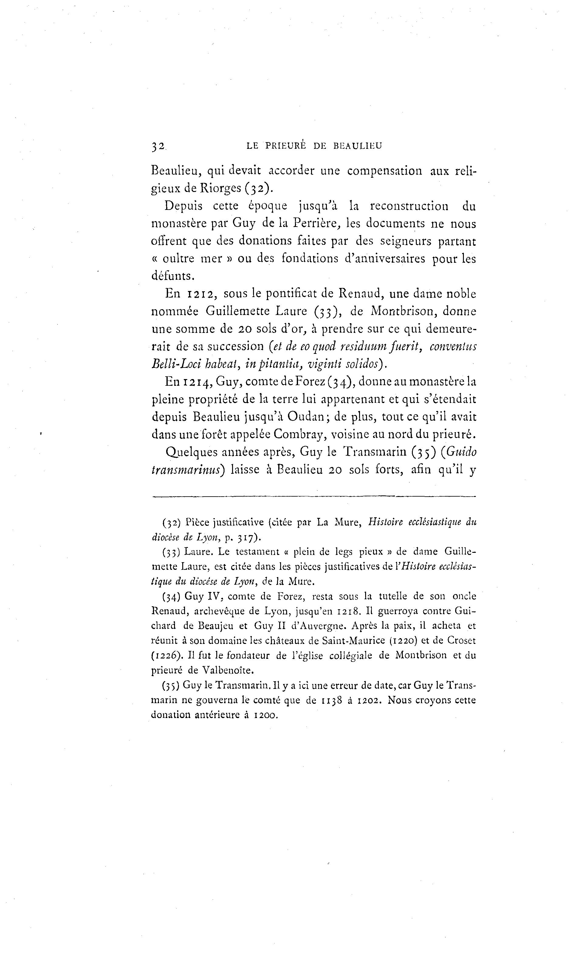 (32) Pièce justificative (citée par La Mure, Histoire ecclésiastique du