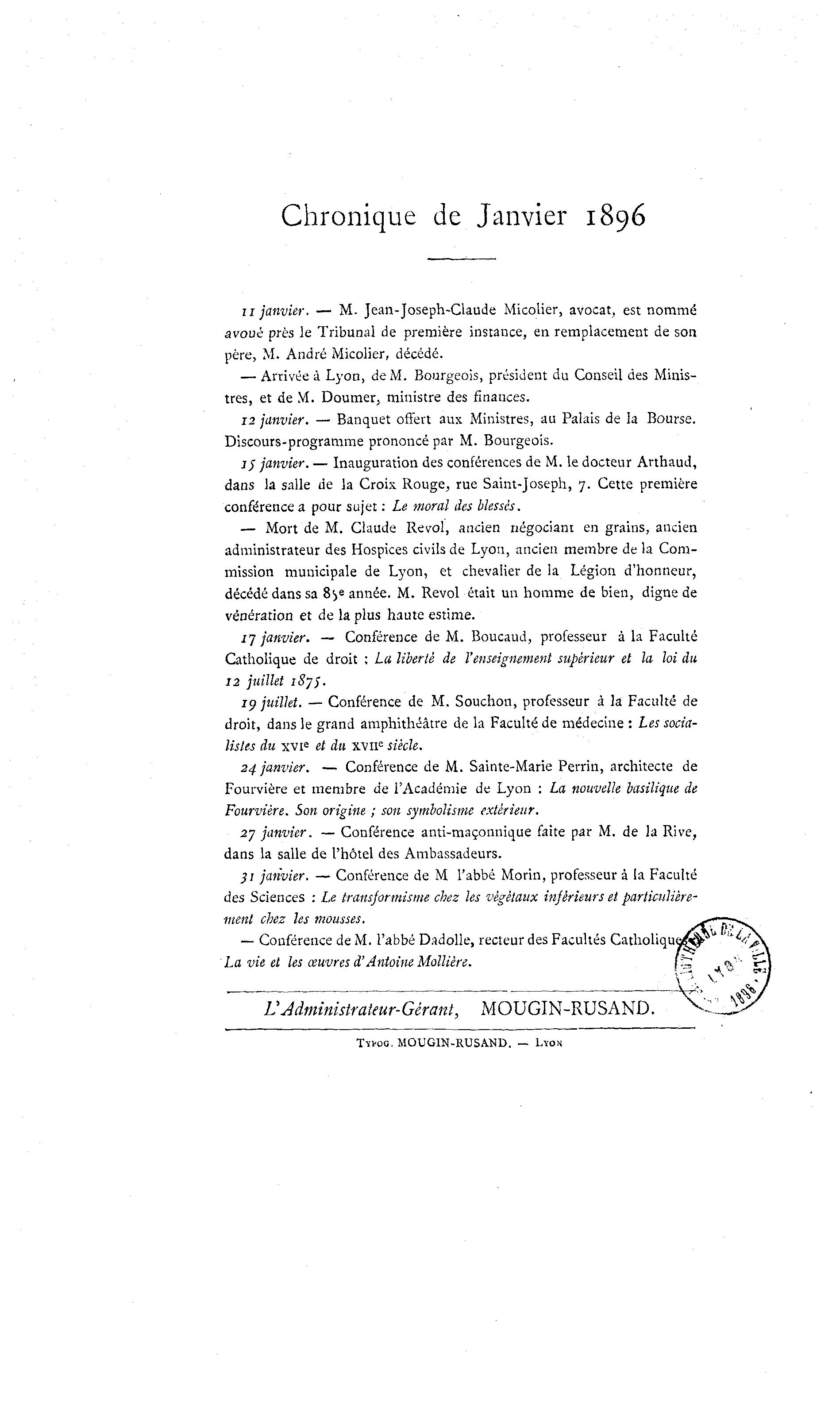 11 janvier. — M. Jean-Joseph-Claude Micolier, avocat, est nommé
