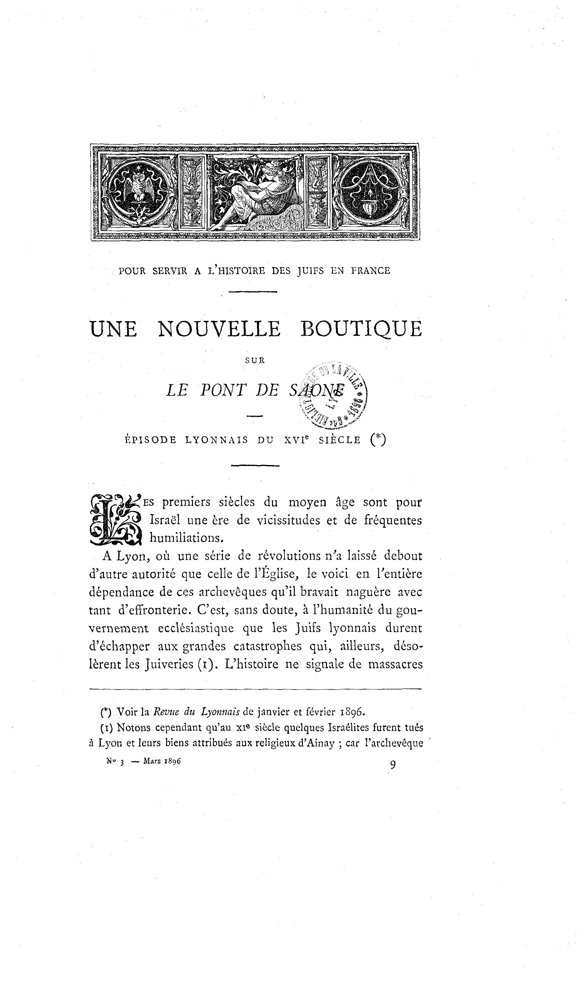 (*) Voir la Revue du Lyonnais de janvier et février 1896.
