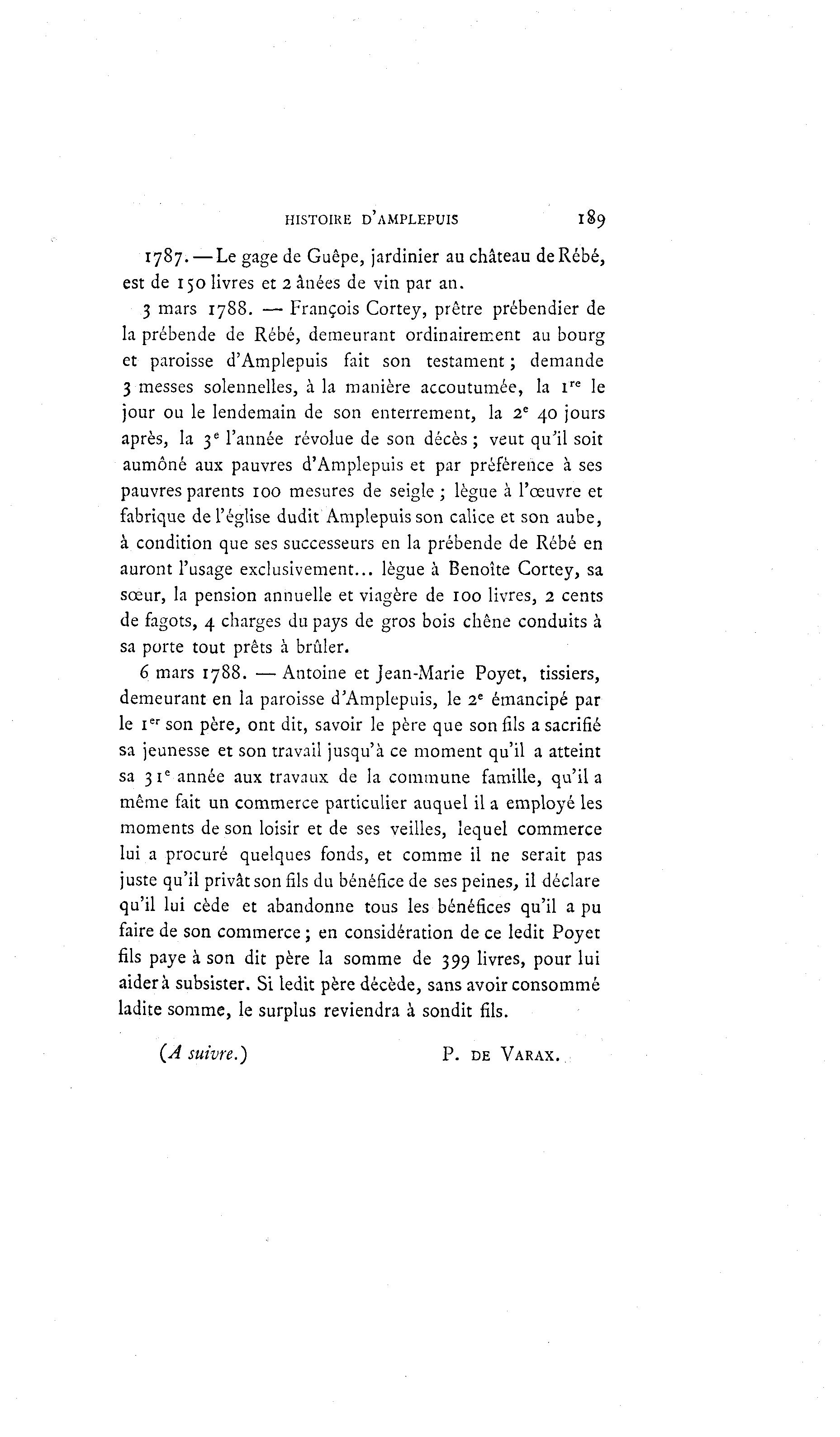 3 mars 1788. — François Cortey, prêtre prébendier de