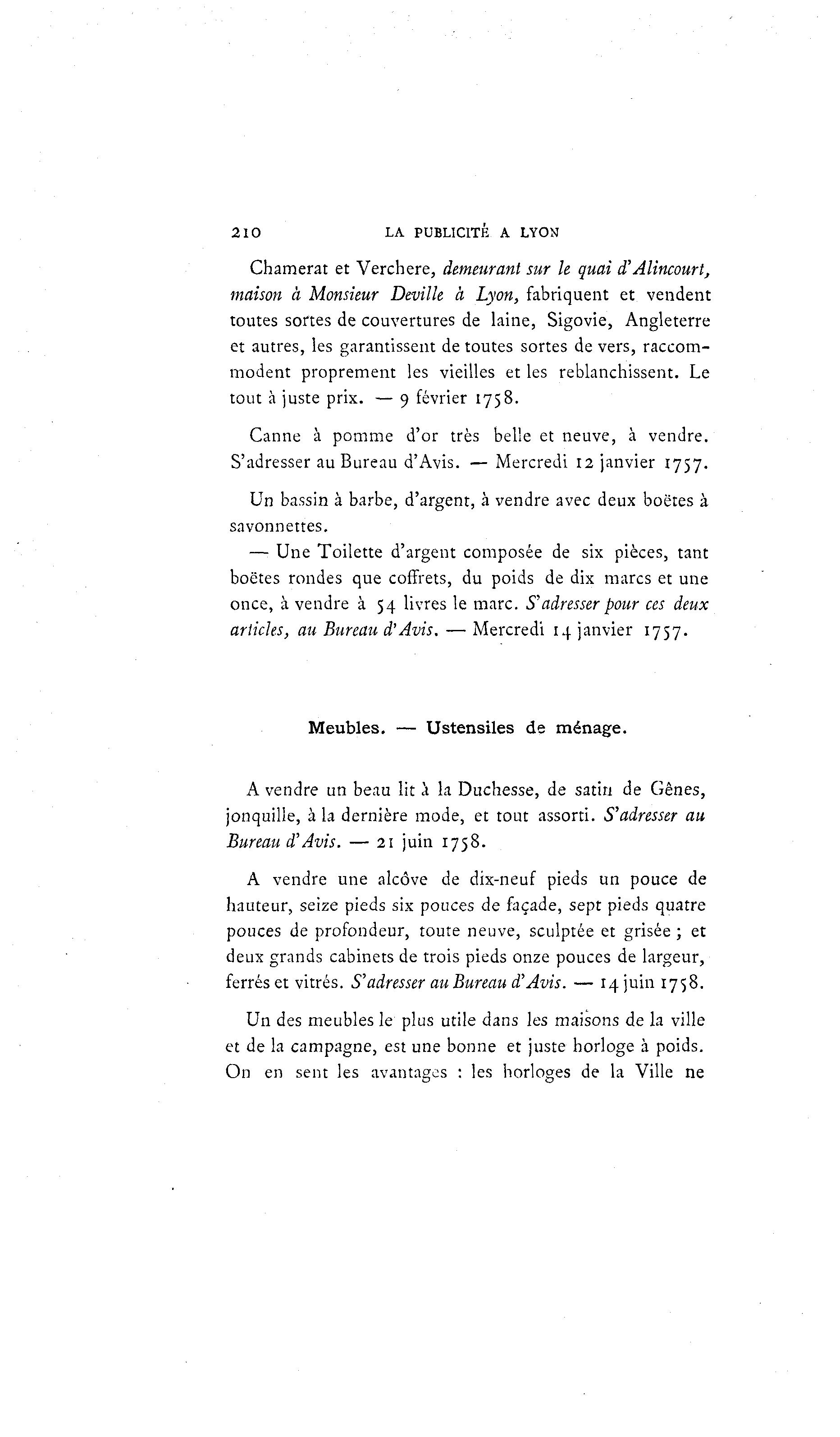 tout à juste prix. — 9 février 1758.