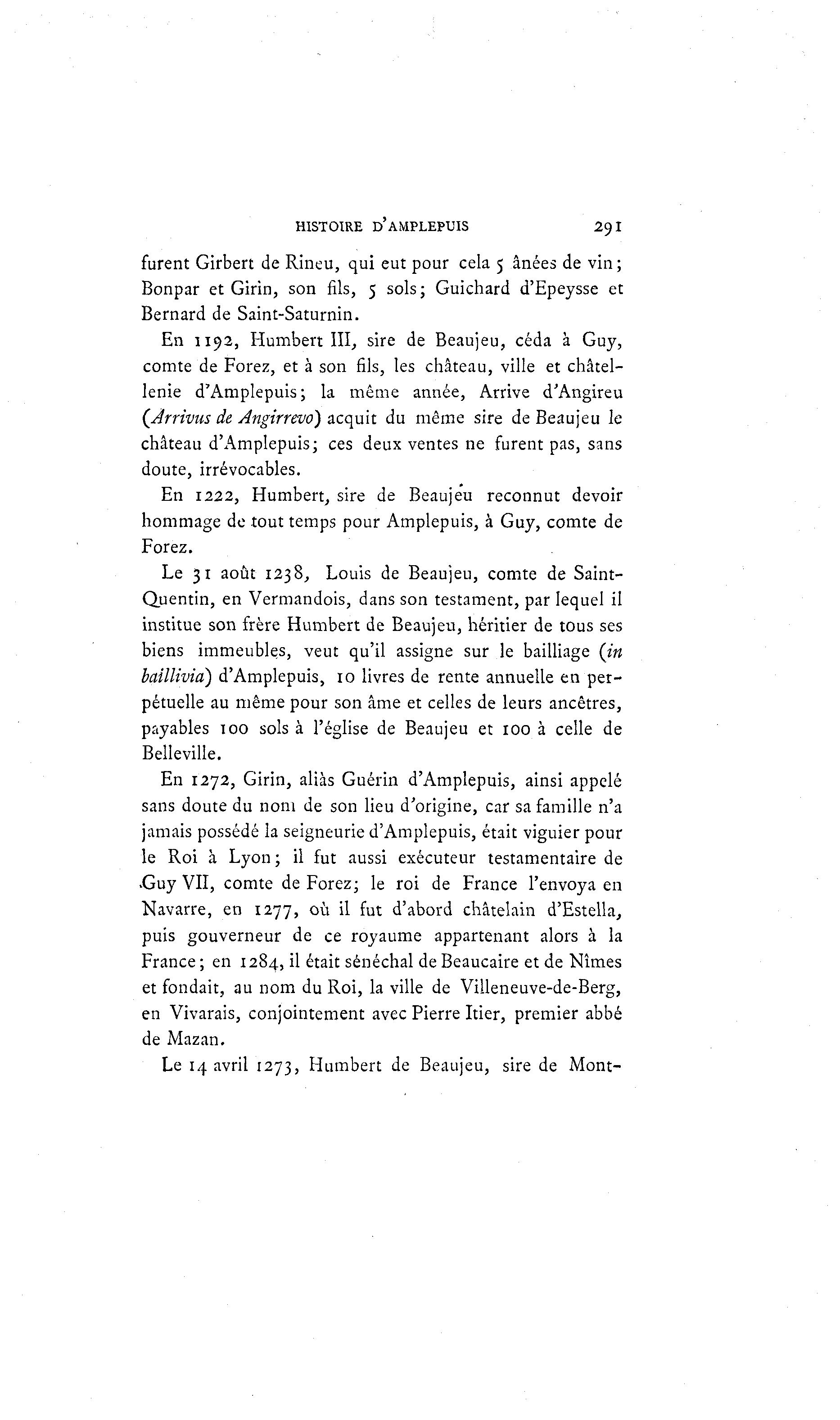 En 1272, Girin, aliàs Guérin d'Amplepuis, ainsi appelé