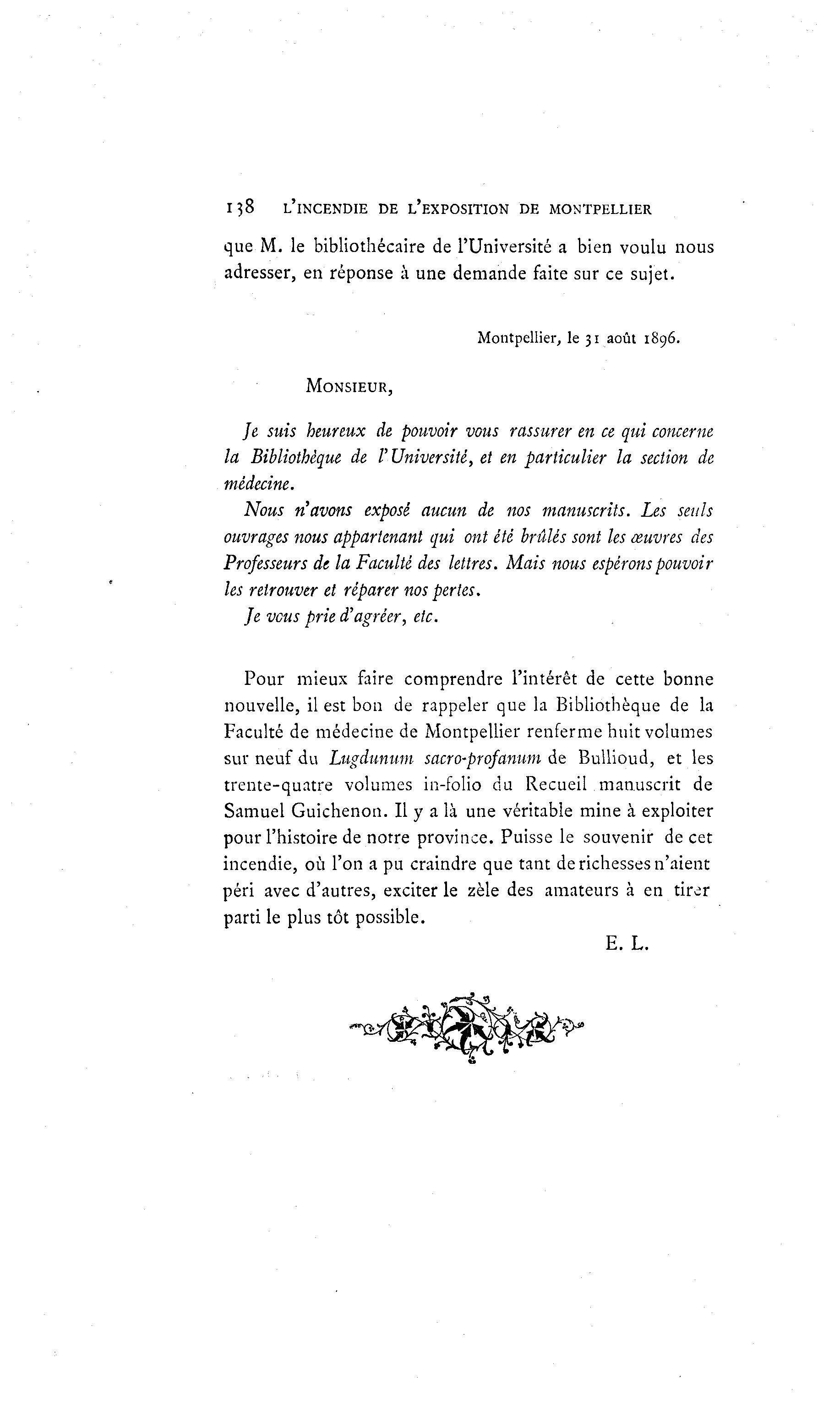 138 L'iNCENDIE DE L'EXPOSITION DE MONTPELLIER