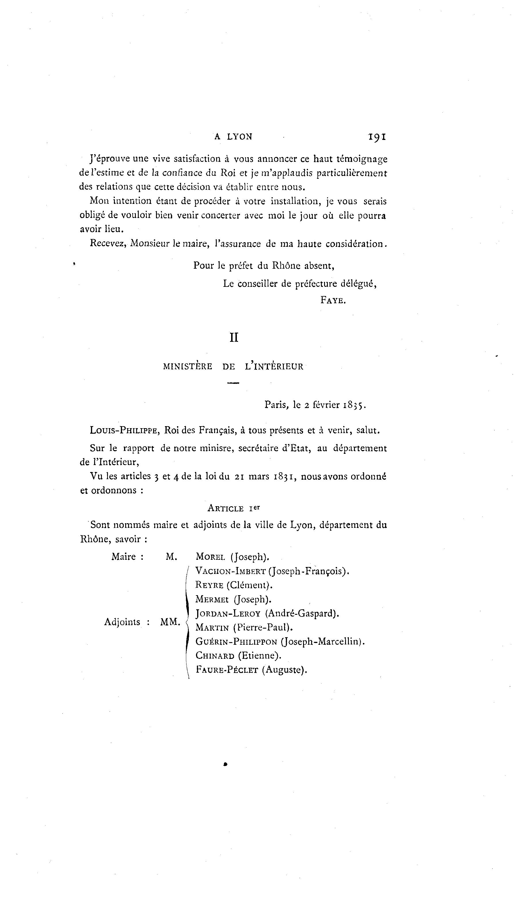 Sont nommés maire et adjoints de la ville de Lyon, département du