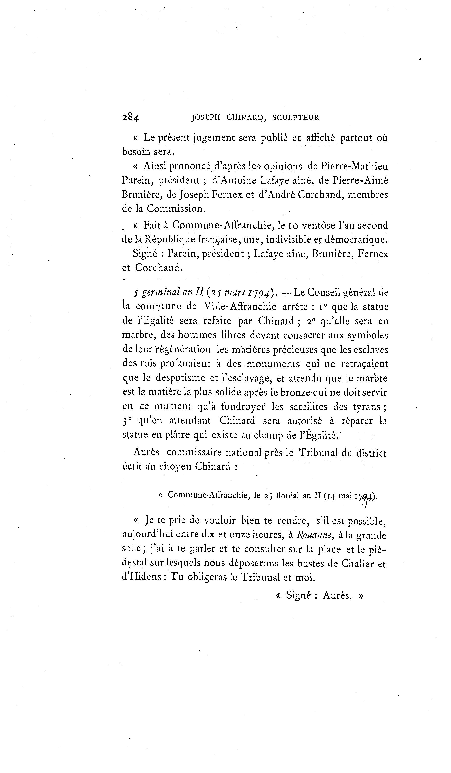 Signé : Parein, président ; Lafaye aîné, Brunière, Fernex