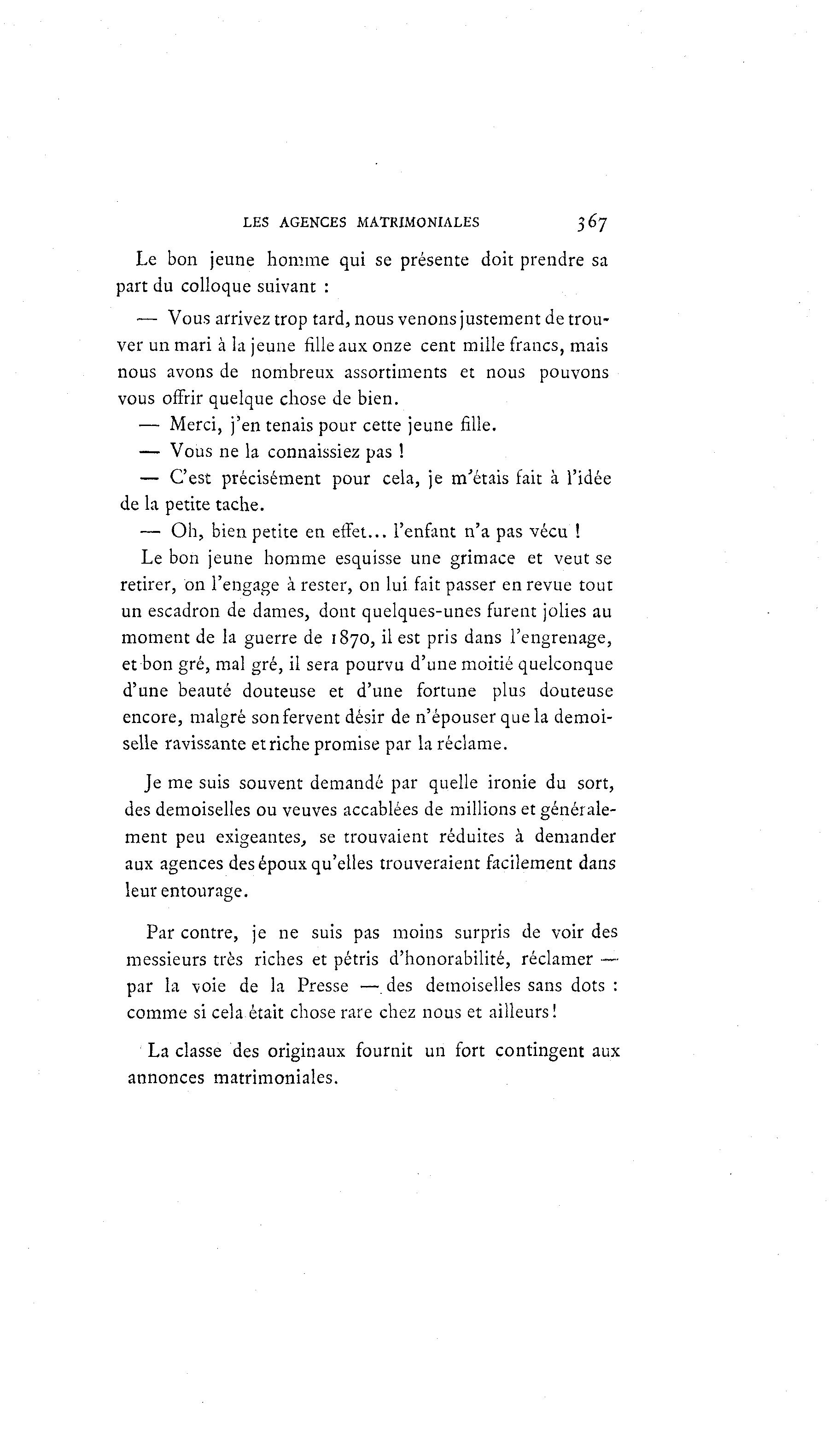 LES AGENCES MATRIMONIALES 367
