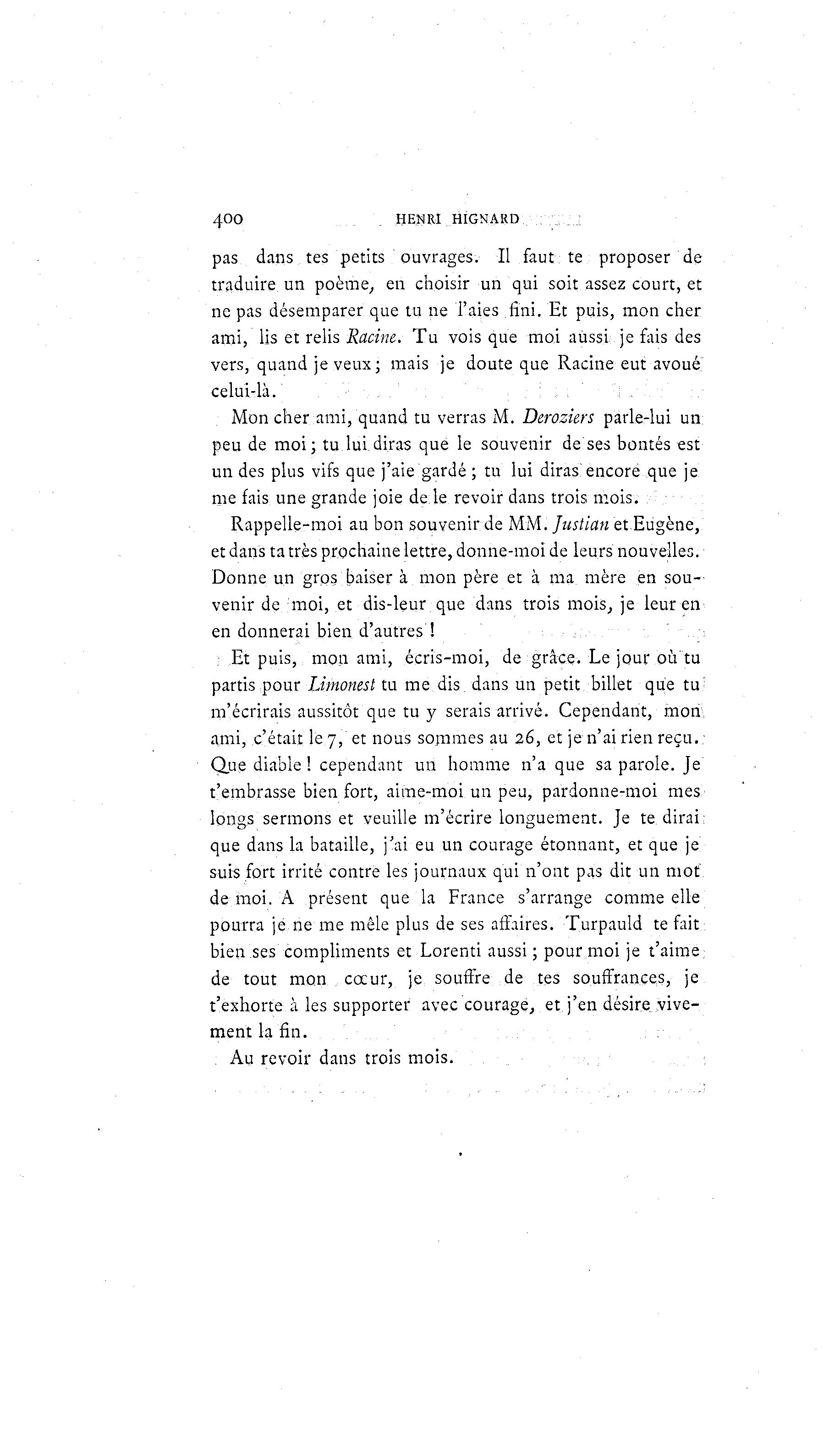 Mon cher ami, quand tu verras M. Deroziers parle-lui un: