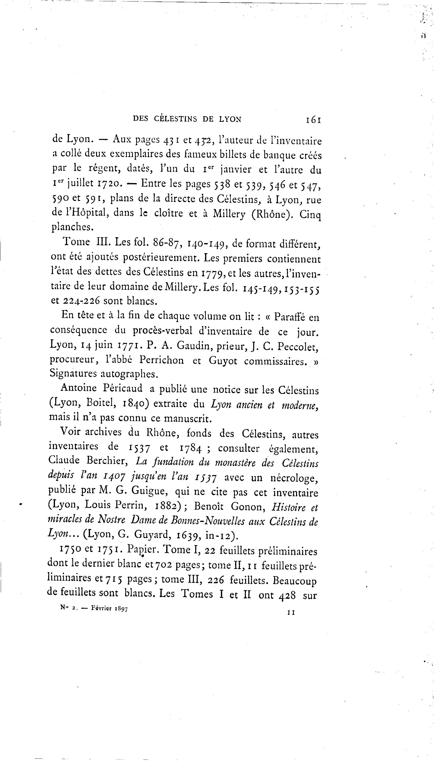 Antoine Péricaud a publié une notice sur les Cèlestins