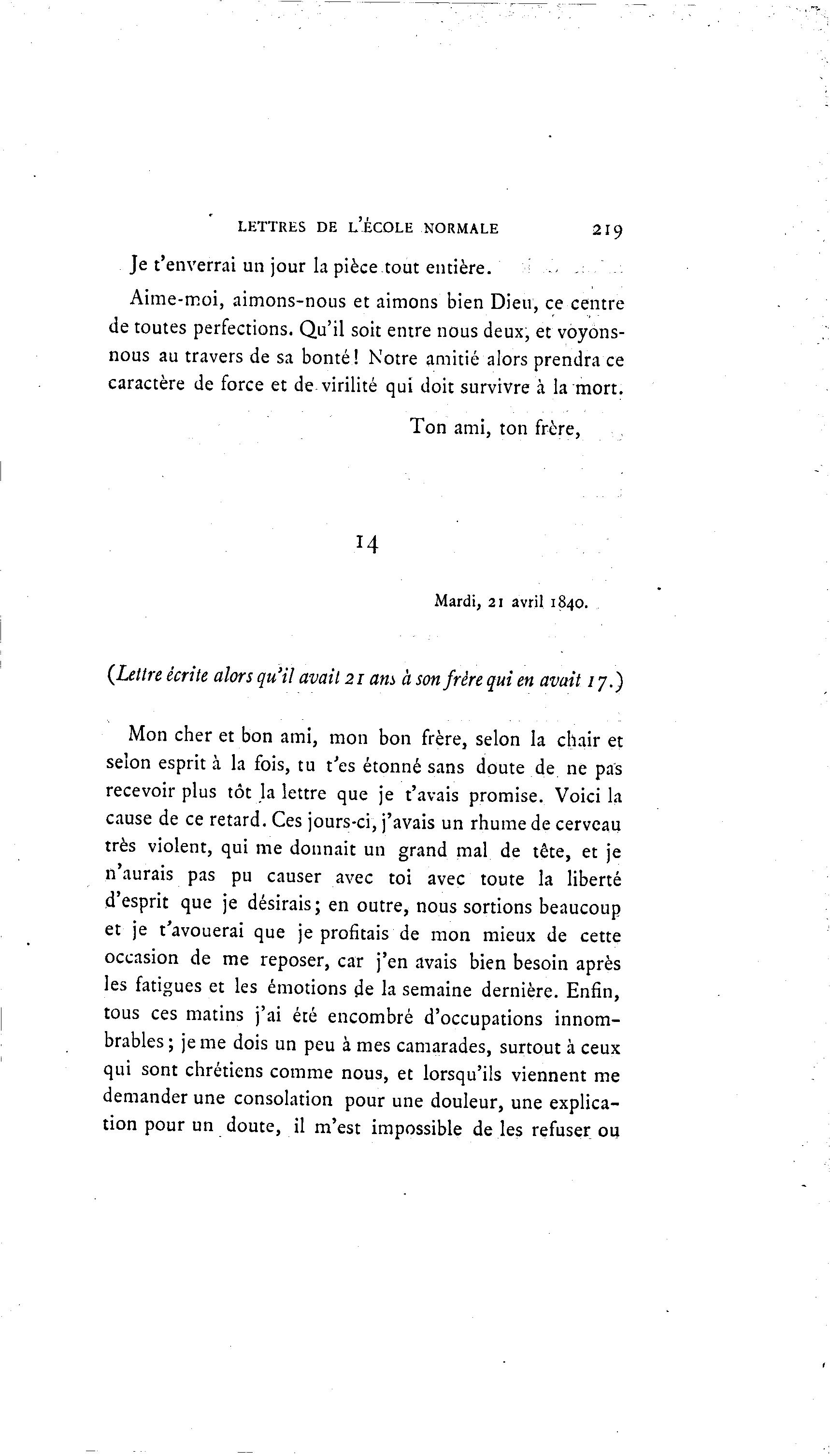 (Lettre écrite alors qu'il avait 21 ans à son frère qui en avait IJ.)