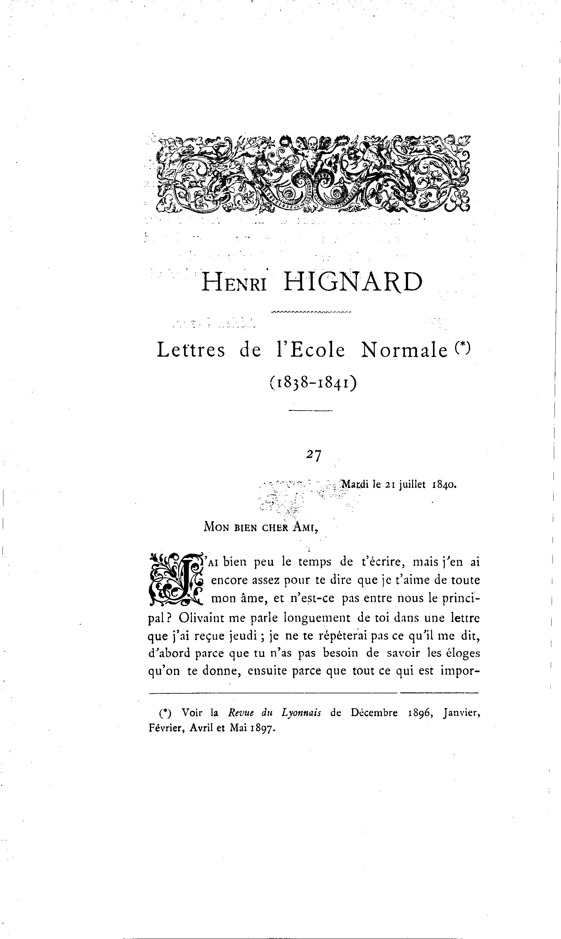 (*) Voir la Revue du Lyonnais de Décembre 1896, Janvier,