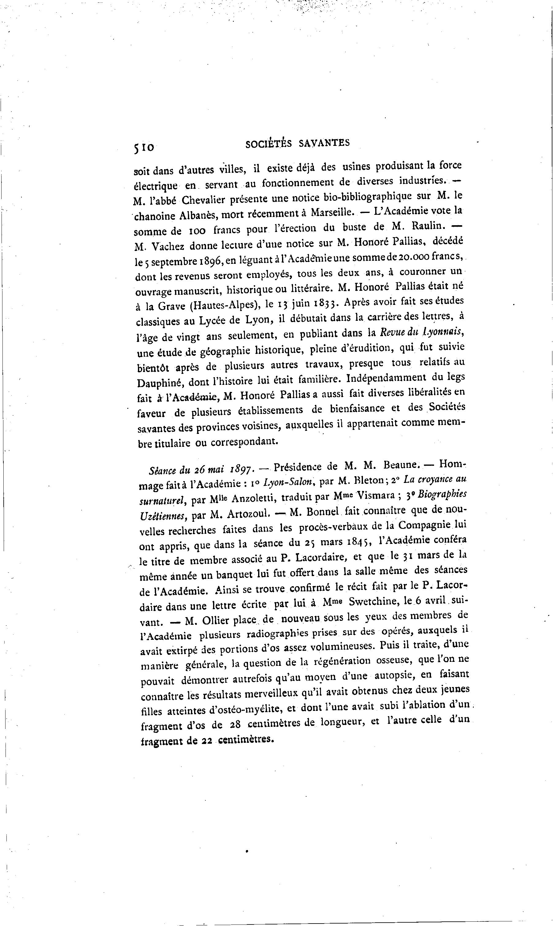 M. Vachez donne lecture d'une notice sur M. Honoré Pallias, décédé