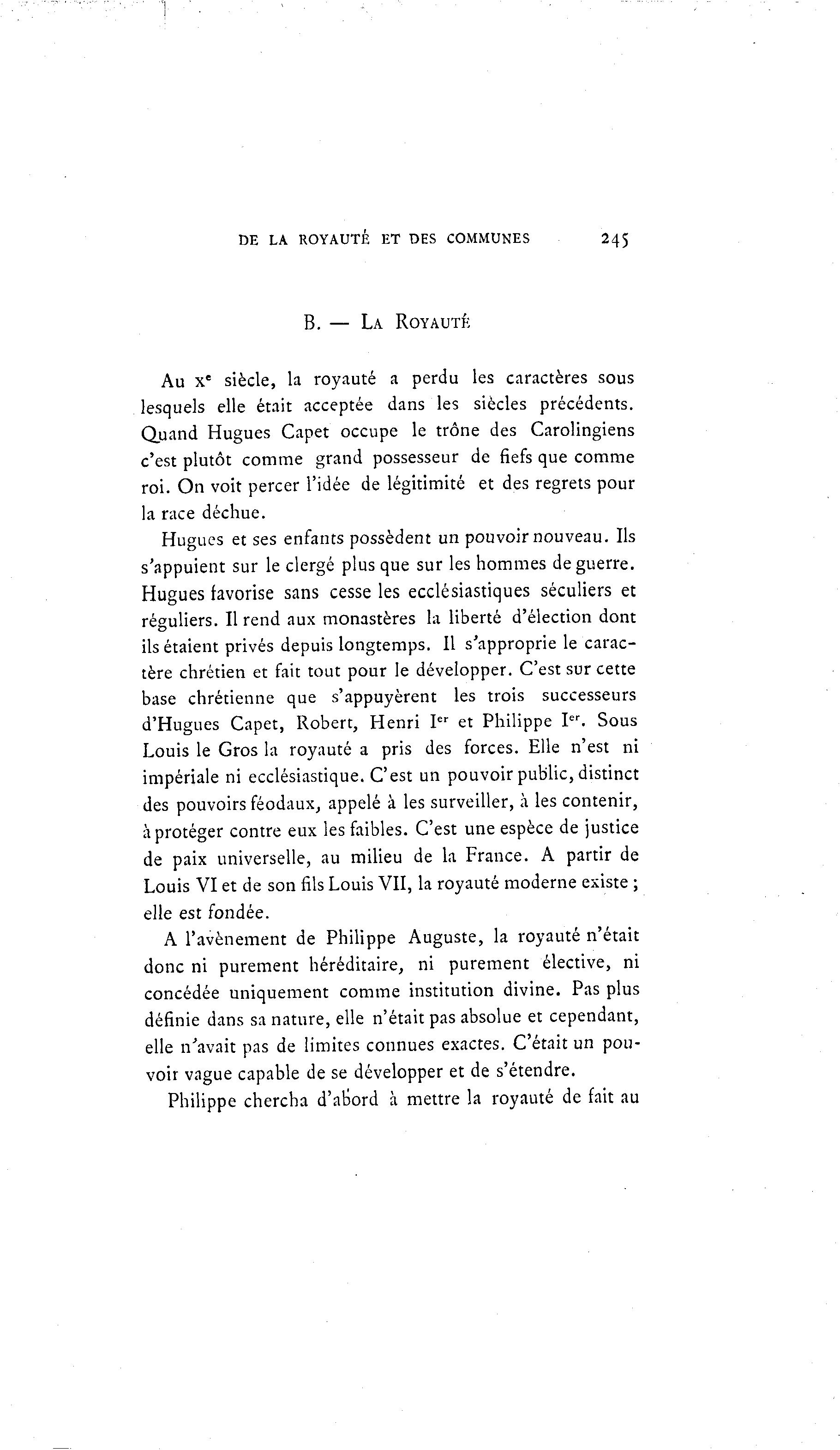 DE LA ROYAUTÉ ET DES COMMUNES 245