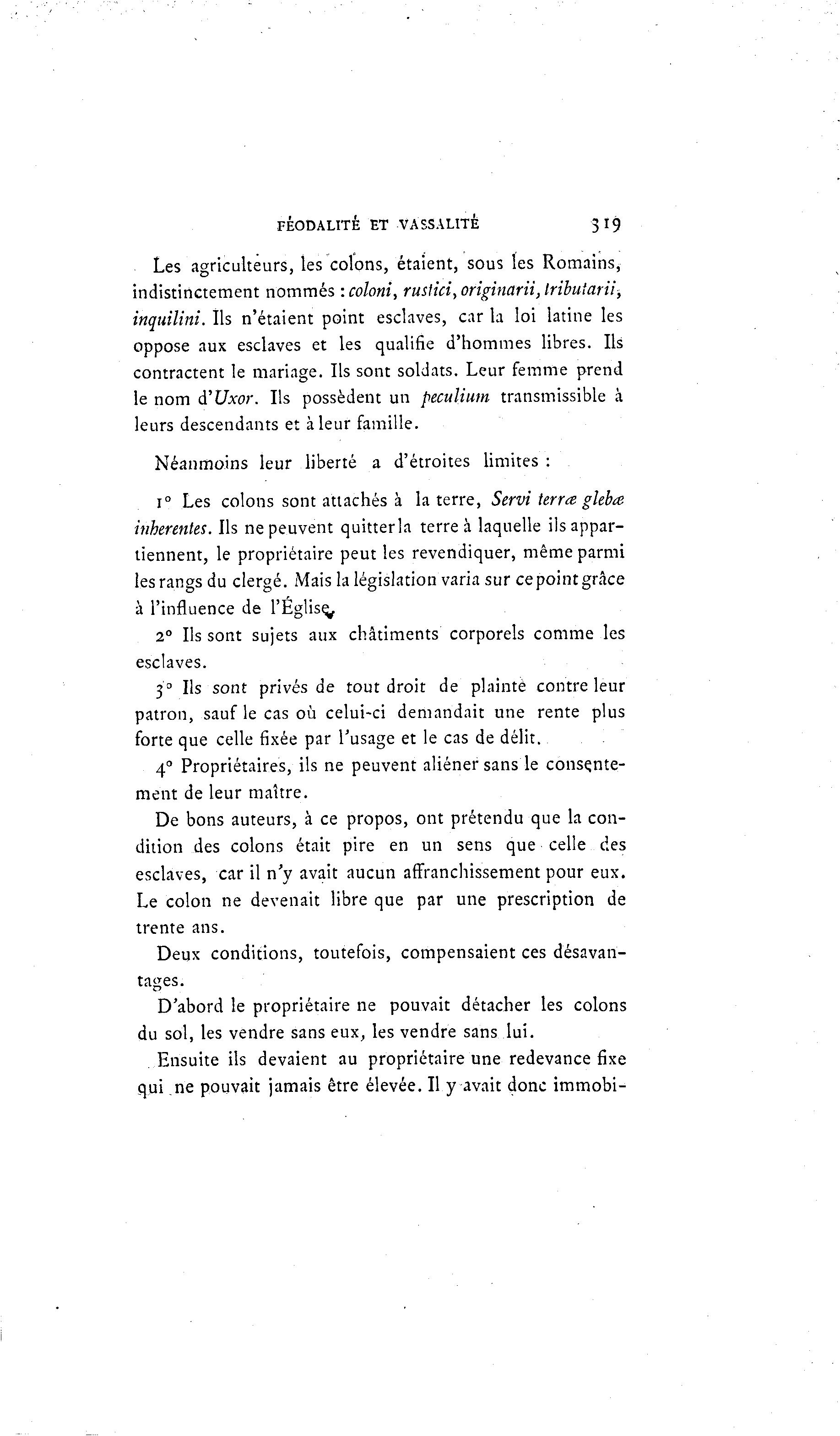 1° Les colons sont attachés à la terre, Servi terrœ glebœ