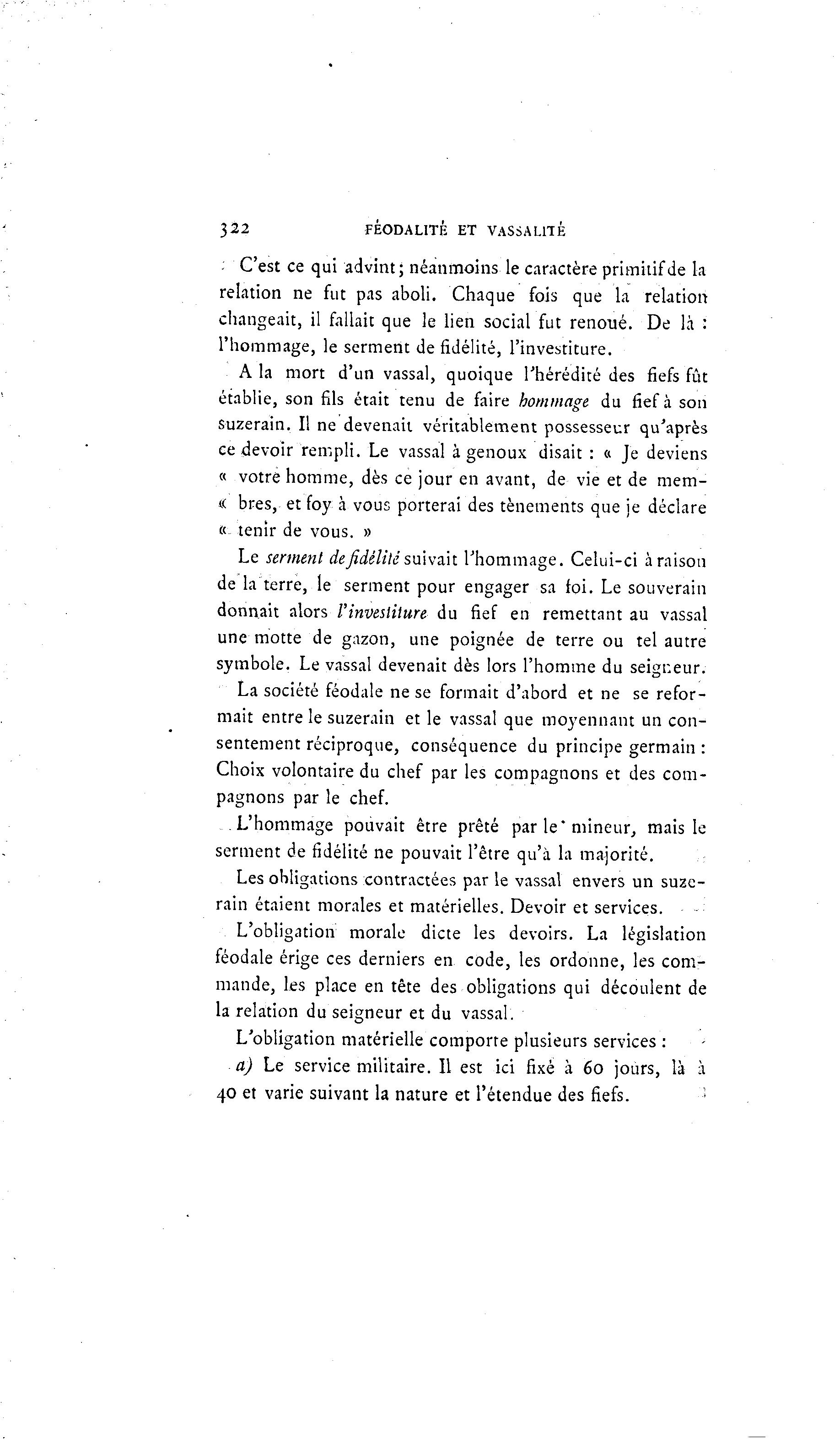322 FÉODALITÉ ET VASSALITÉ