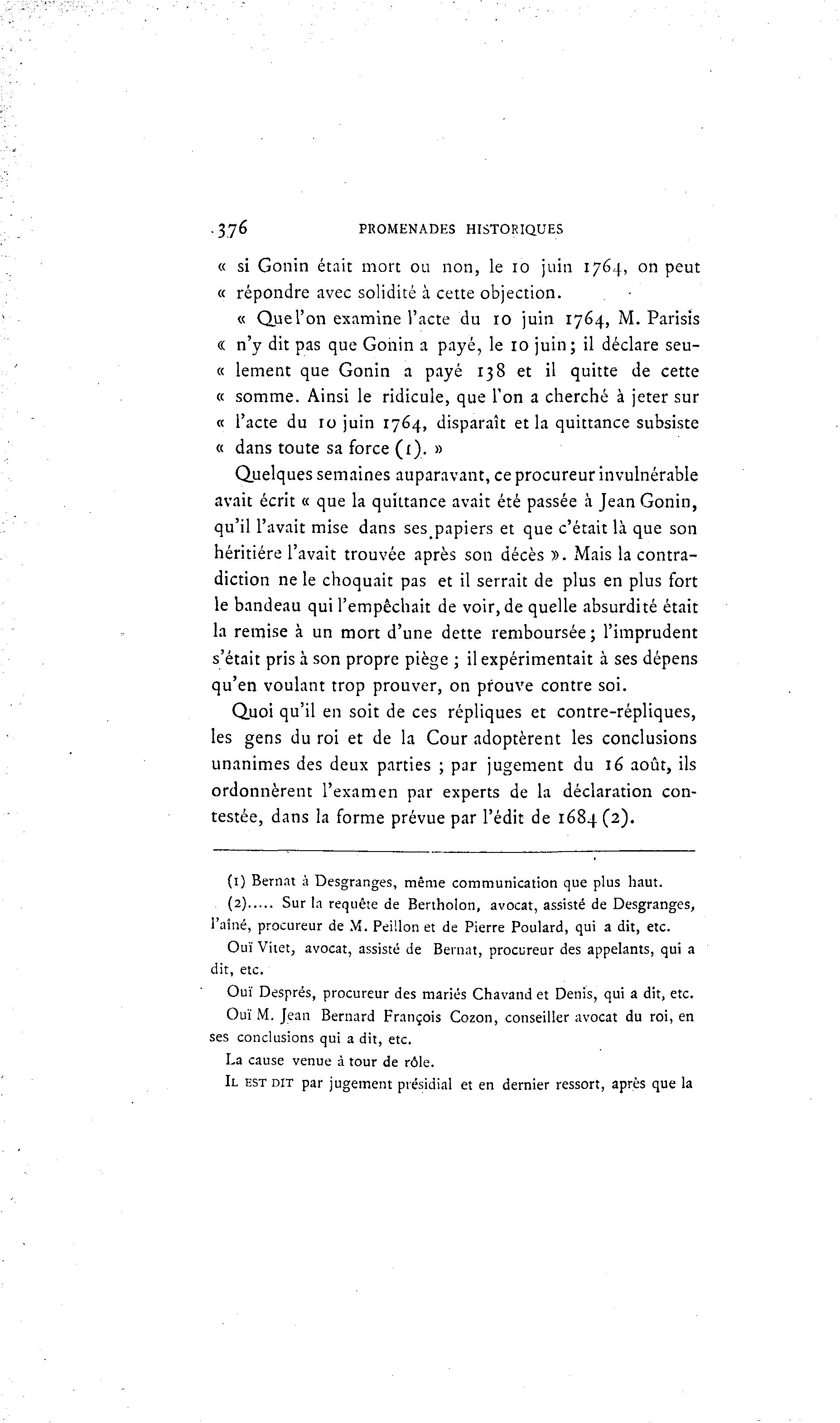 « Que l'on examine l'acte du 10 juin 1764, M. Parisis