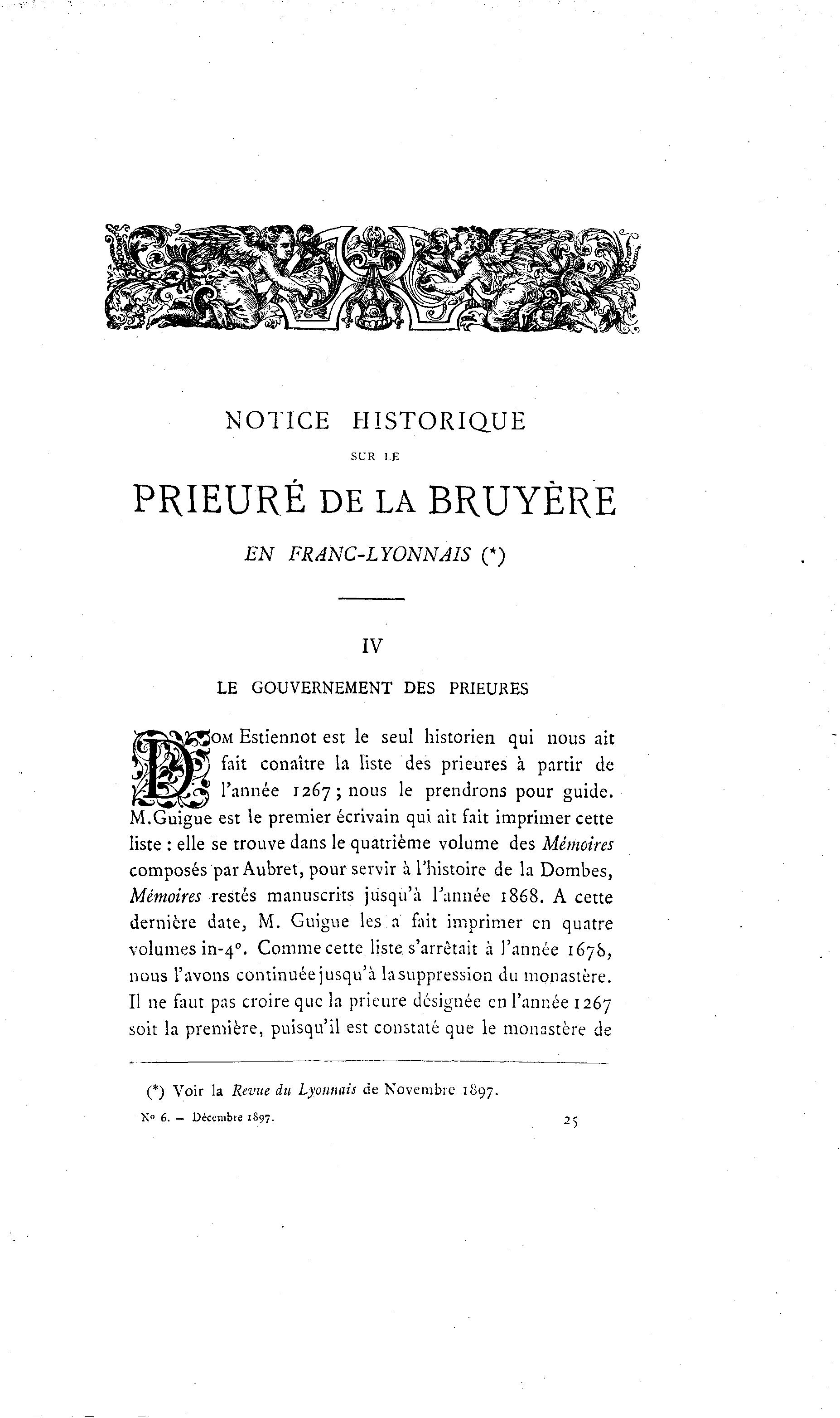 (*) Voir la Revue du Lyonnais de Novembre 1897.
