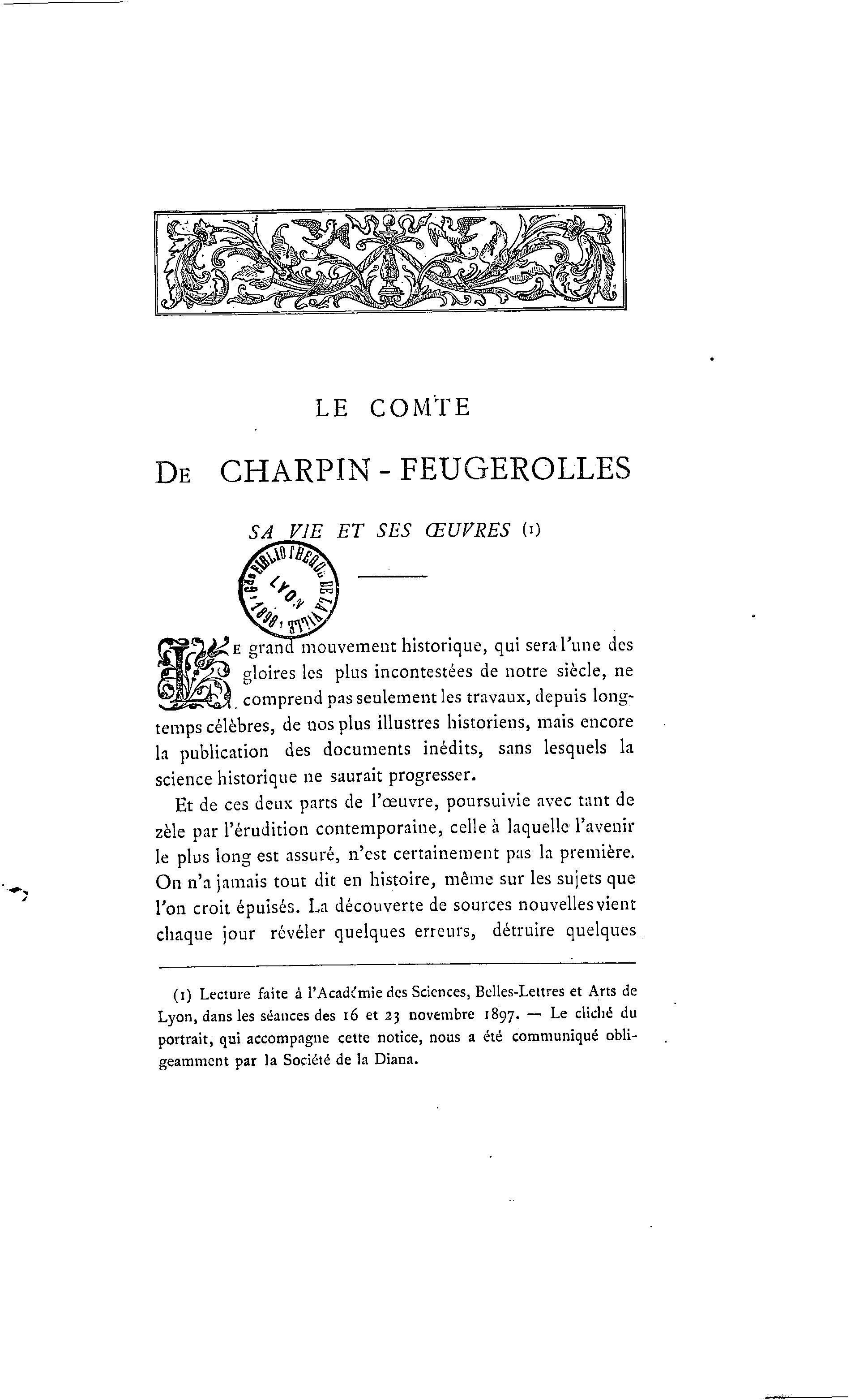 (i) Lecture faite à l'Académie des Sciences, Belles-Lettres et Arts de