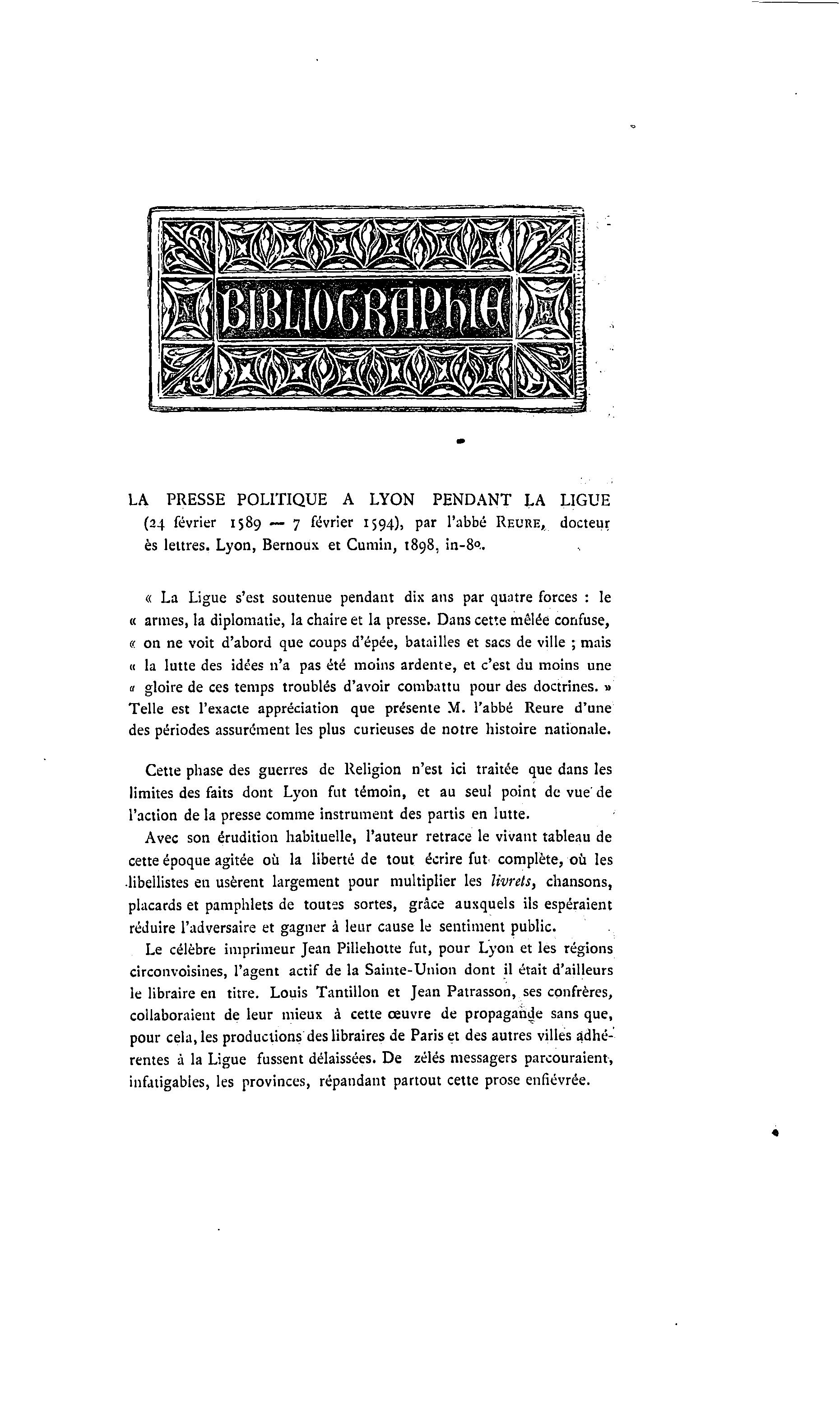 es lettres. Lyon, Bernoux et Cumin, 1898, in-8°..