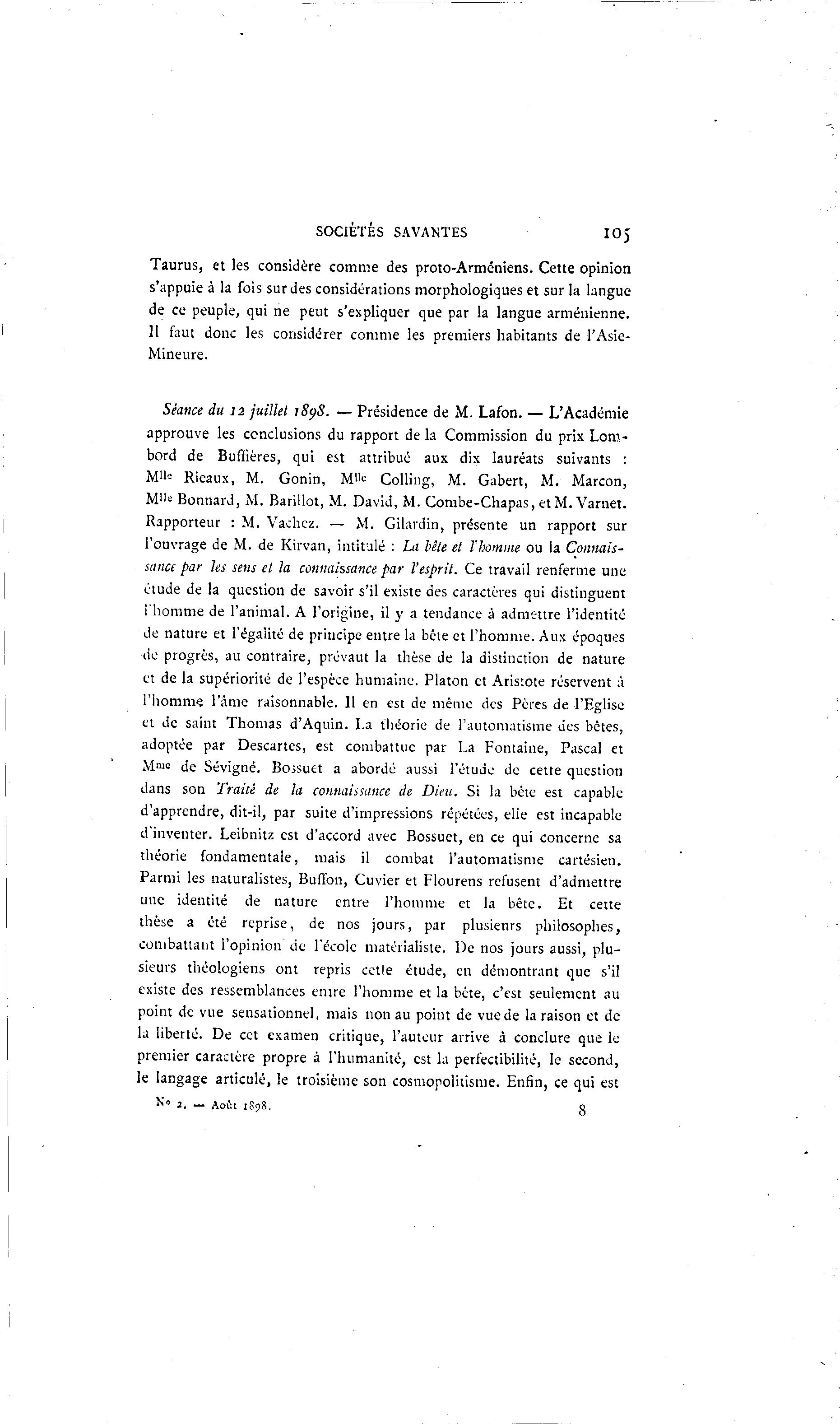 l'ouvrage de M. de Kirvan, intitulé : La bête et l'homme ou la Connais-