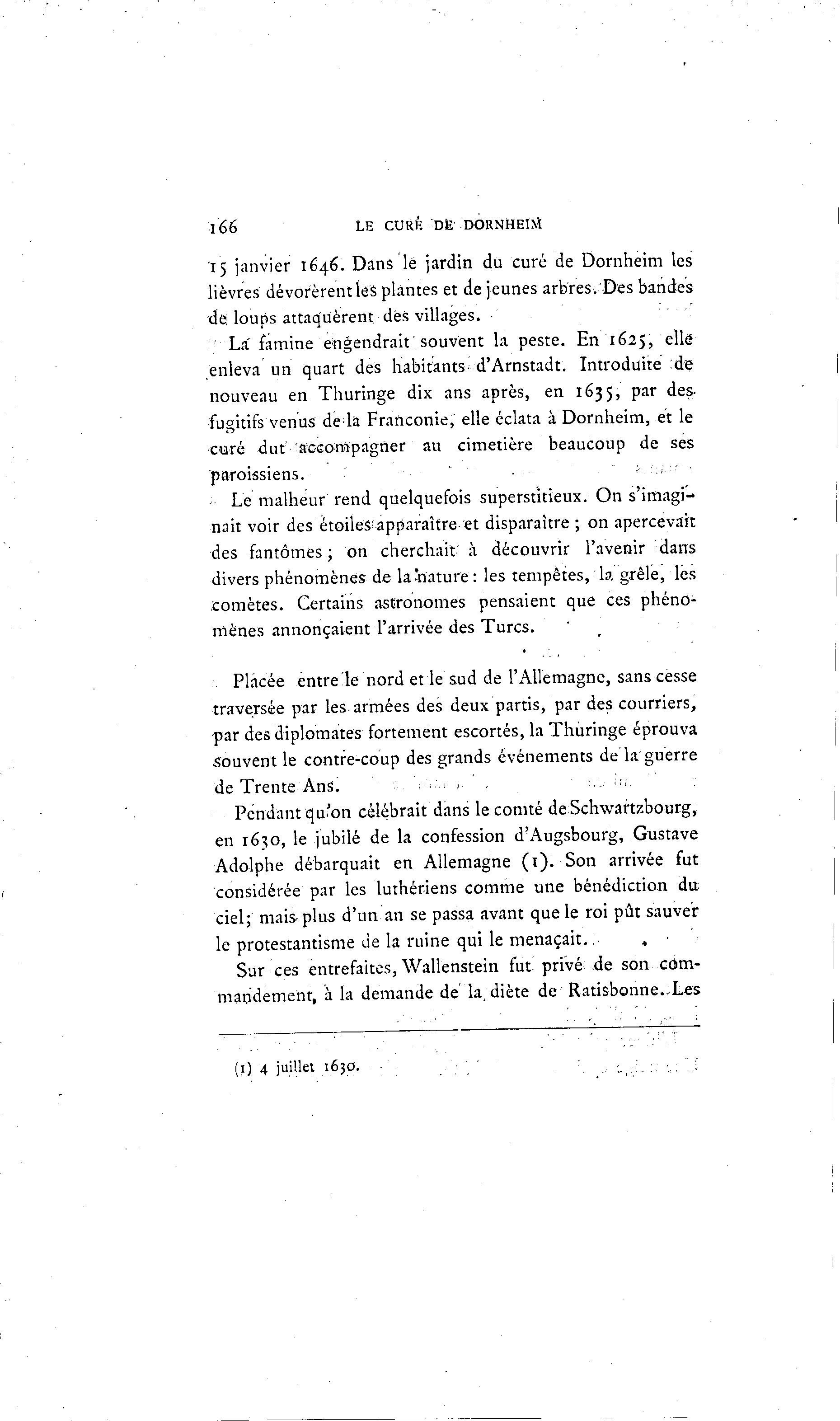 i66 LE CURK DÉ DORNHEM 15 janvier 1646. Dans lé jardin du curé de Dornheim les lièvres dévorèrent les plantes et de jeunes arbres. Des bandes de loups attaquèrent dés villages. : La" famine engendrait souvent la peste. En 1625, elle enleva un quart des habitants d'Arnstadt. Introduite de nouveau en Thuringe dix ans après, en 1635, par des- fugitifs venus delà Franconie, elle éclata à Dornheim, et le curé