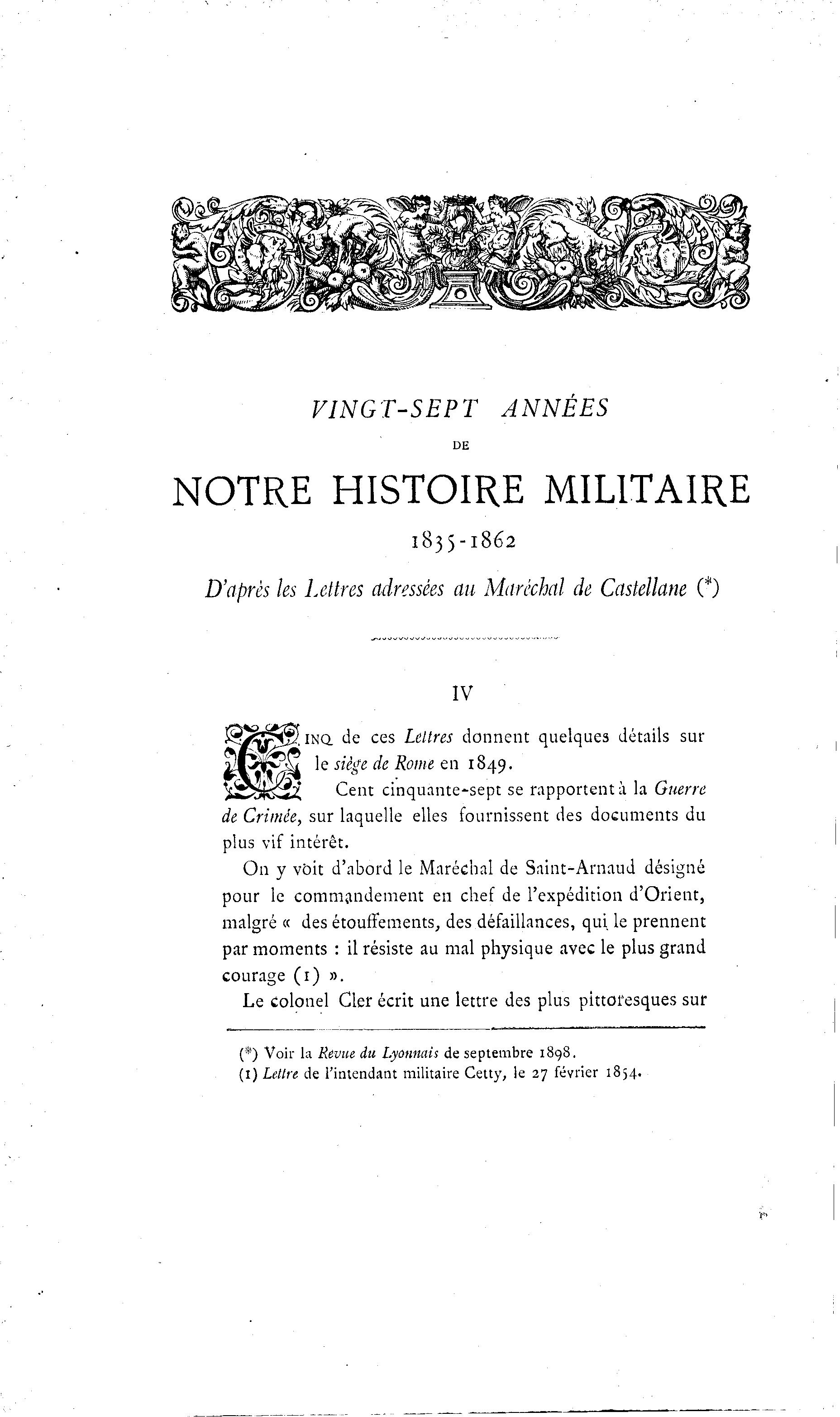 (1) Lettre de l'intendant militaire Cetty, le 27 février 1854.