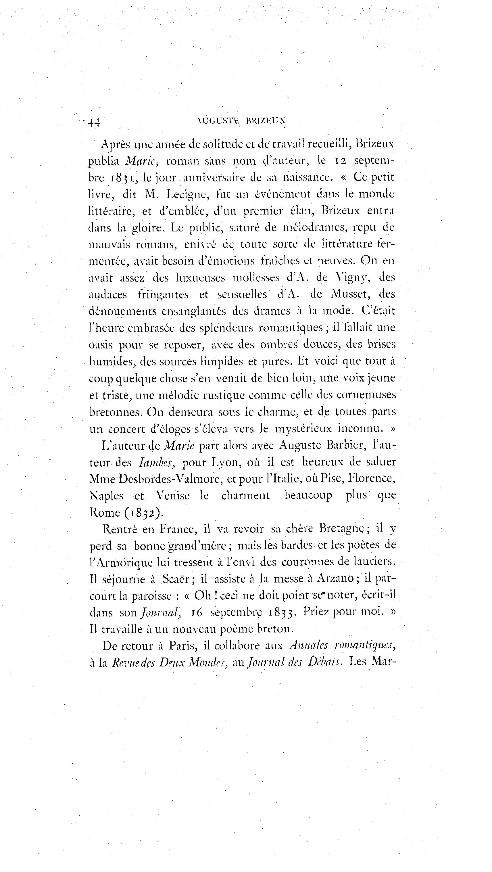 littéraire, et d'emblée, d'un premier élan, Brizeux entra
