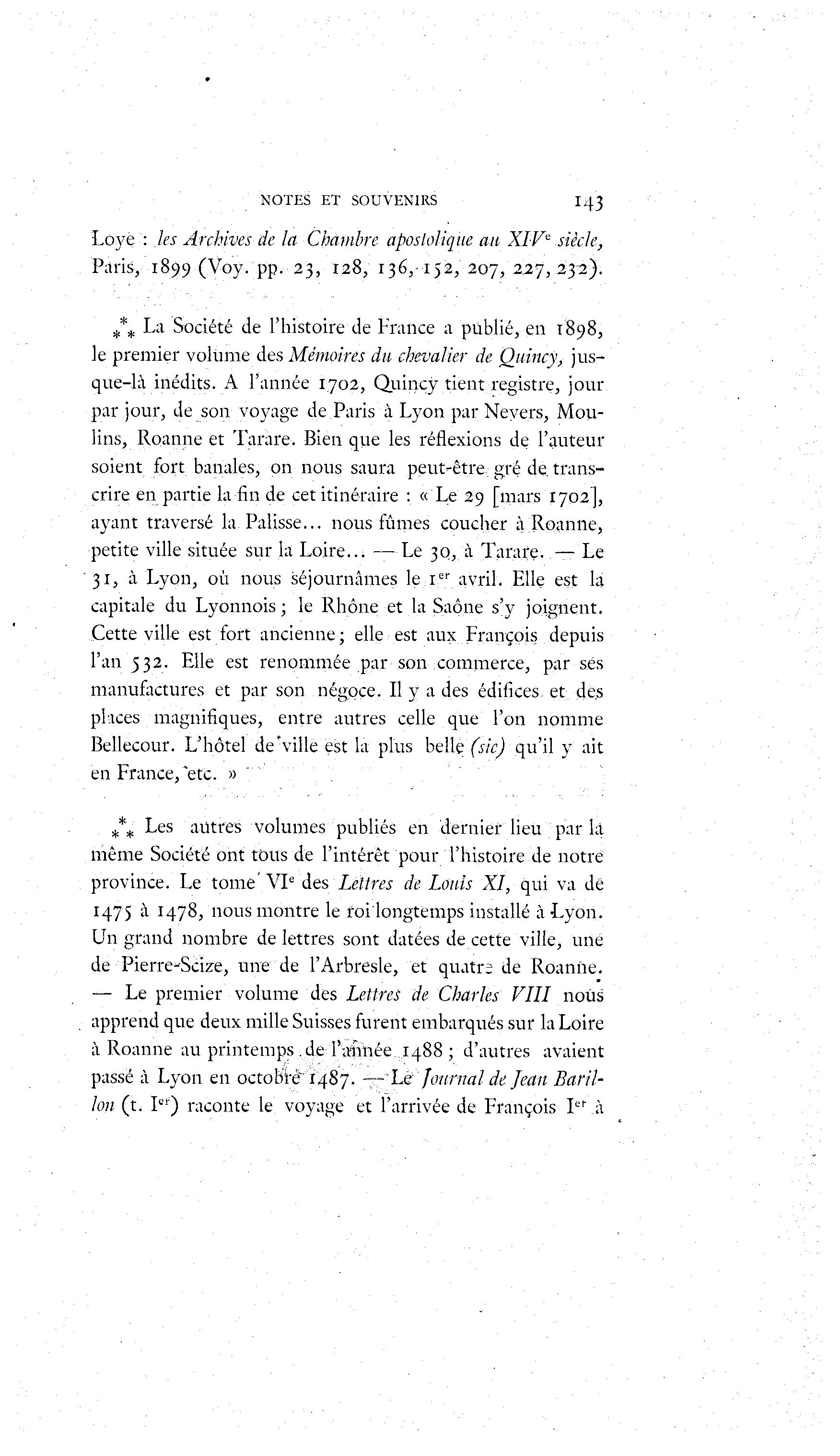 lins, Roanne et Tarare. Bien que les réflexions de l'auteur