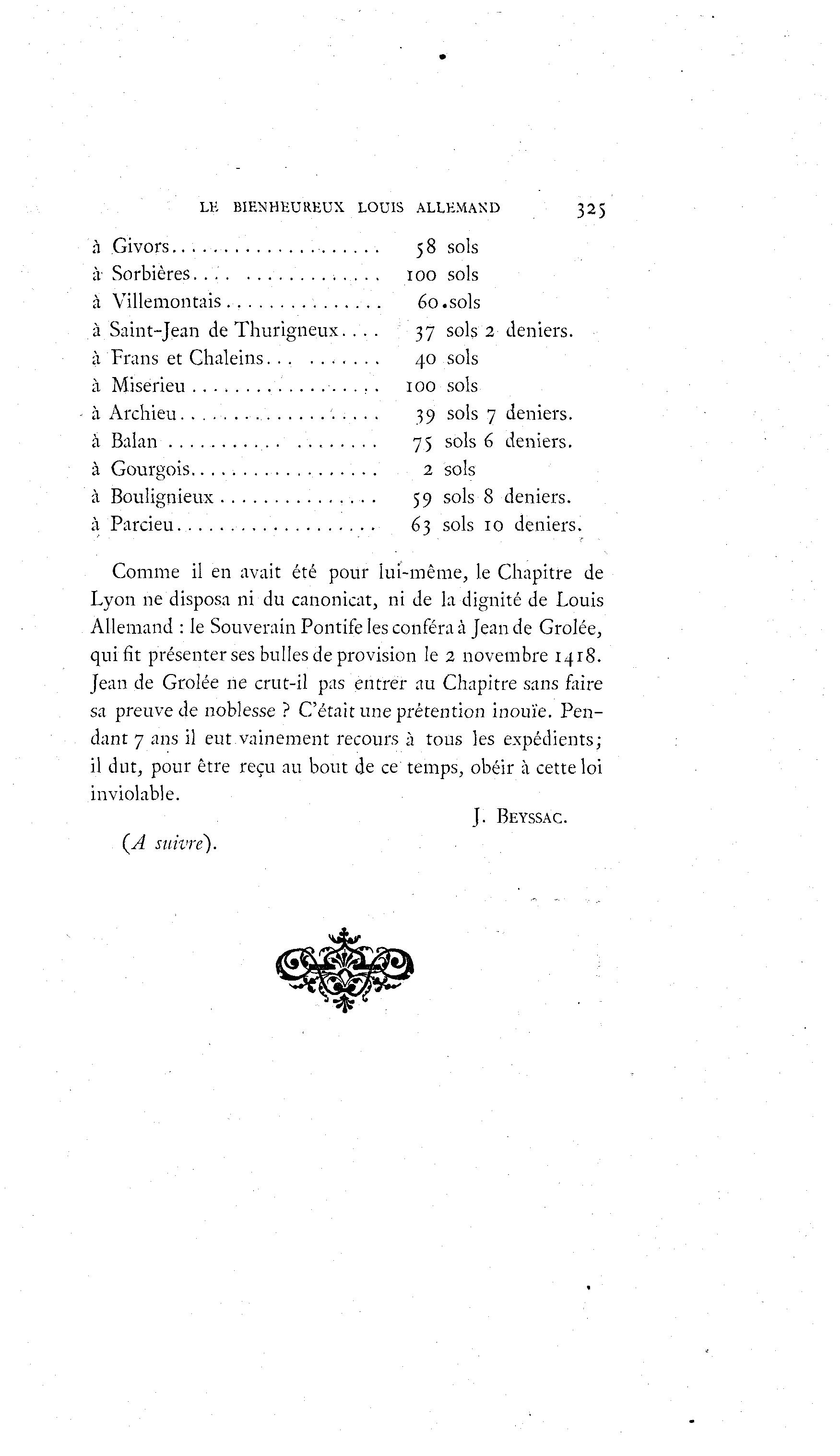 Lyon ne disposa ni du canonicat, ni de la dignité de Louis