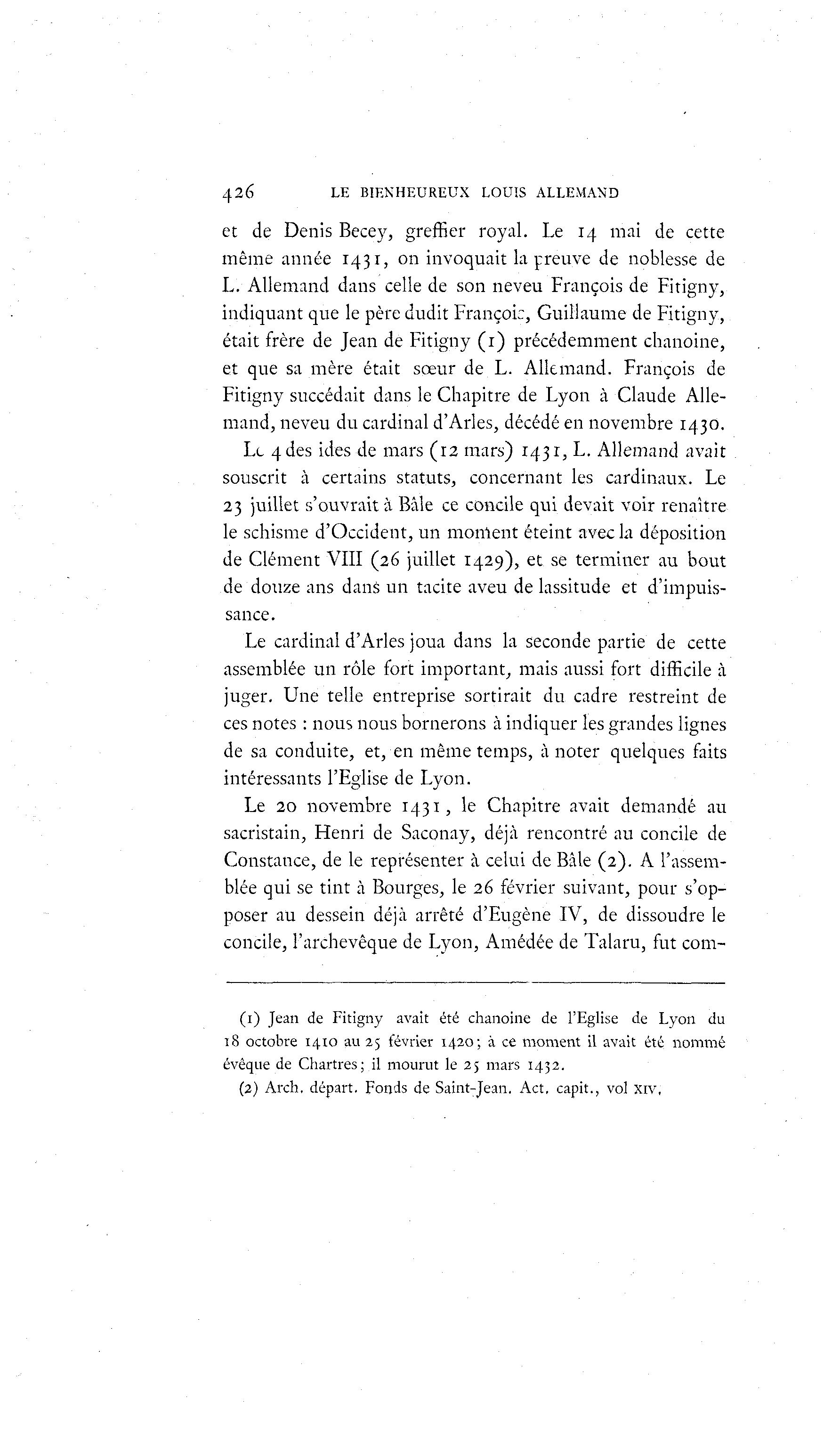 (1) Jean de Fitigny avait été chanoine de l'Eglise de Lyon du