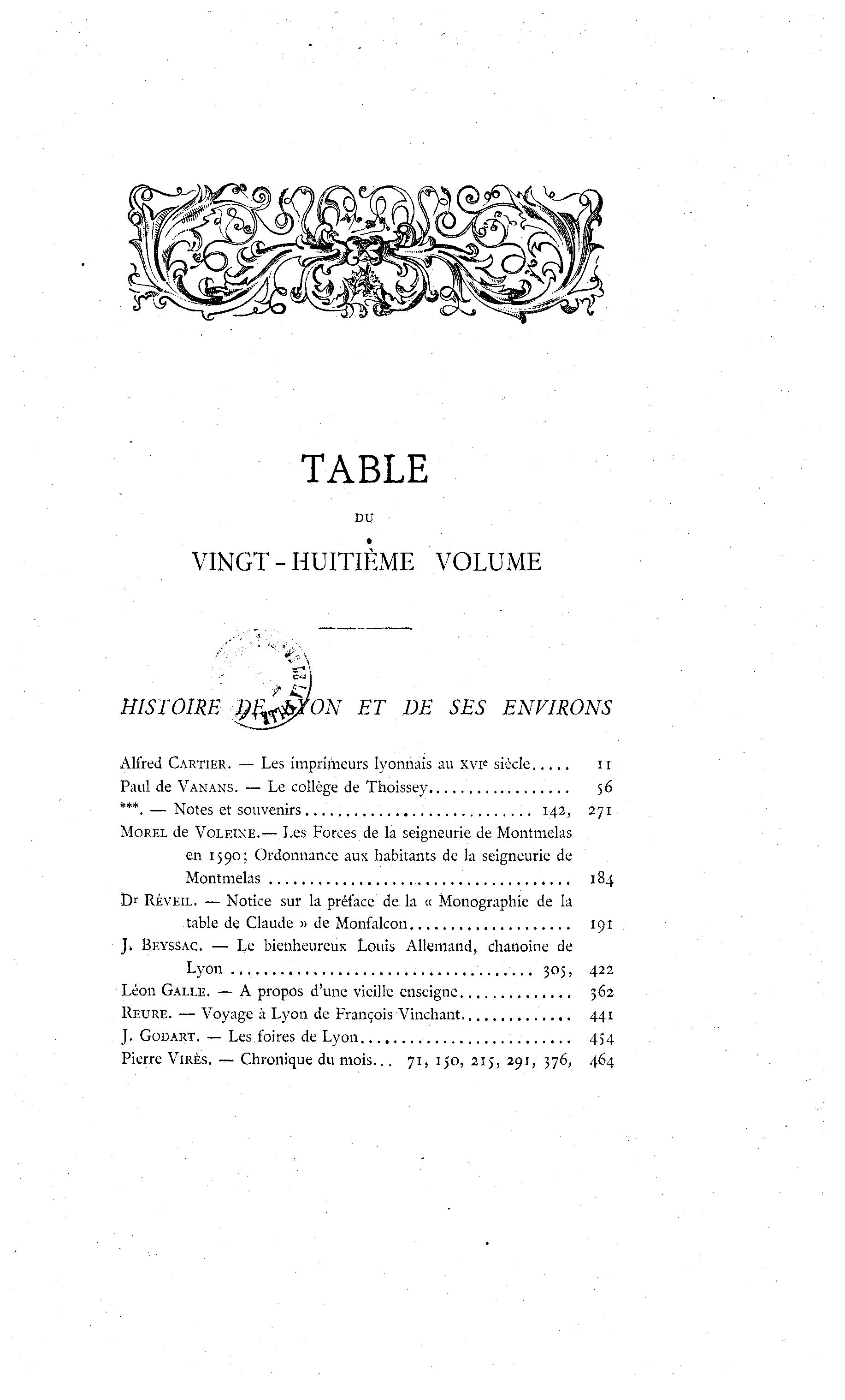 HEURE. — Voyage à Lyon de François Vinchant 441